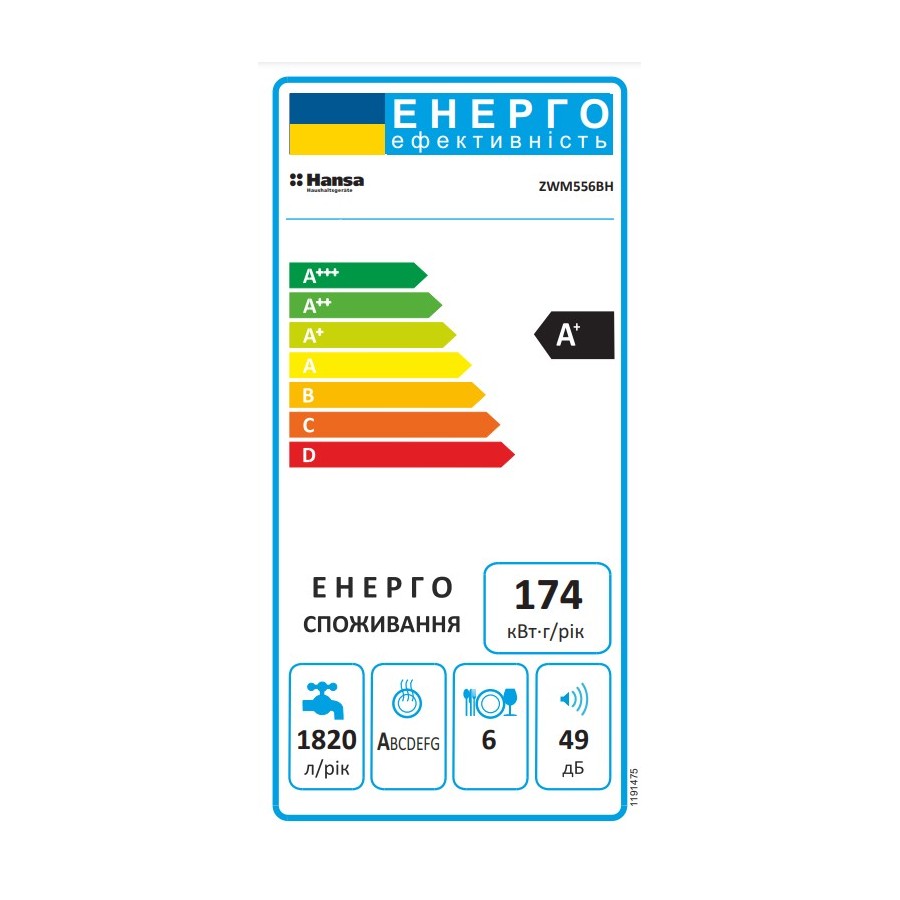 З енергоспоживанням 0,609 кВт·год за цикл та витратою води 6,5 л, Hansa ZWM556BH відзначається високою енергоефективністю (клас A+) та економічністю. Рівень шуму в 49 дБ забезпечує тиху роботу, не порушуючи комфорт у приміщенні.