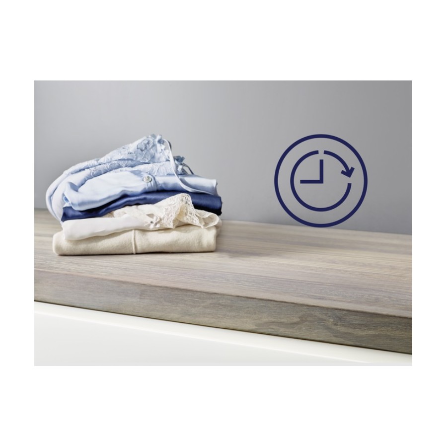 Ретельне прання за коротший час з опцією "Економія часу". Натисніть кнопку, щоб скоротити час основного циклу машини аж до 50%. Бавовна і синтетика очищуються в одному повному циклі всього за половину часу.