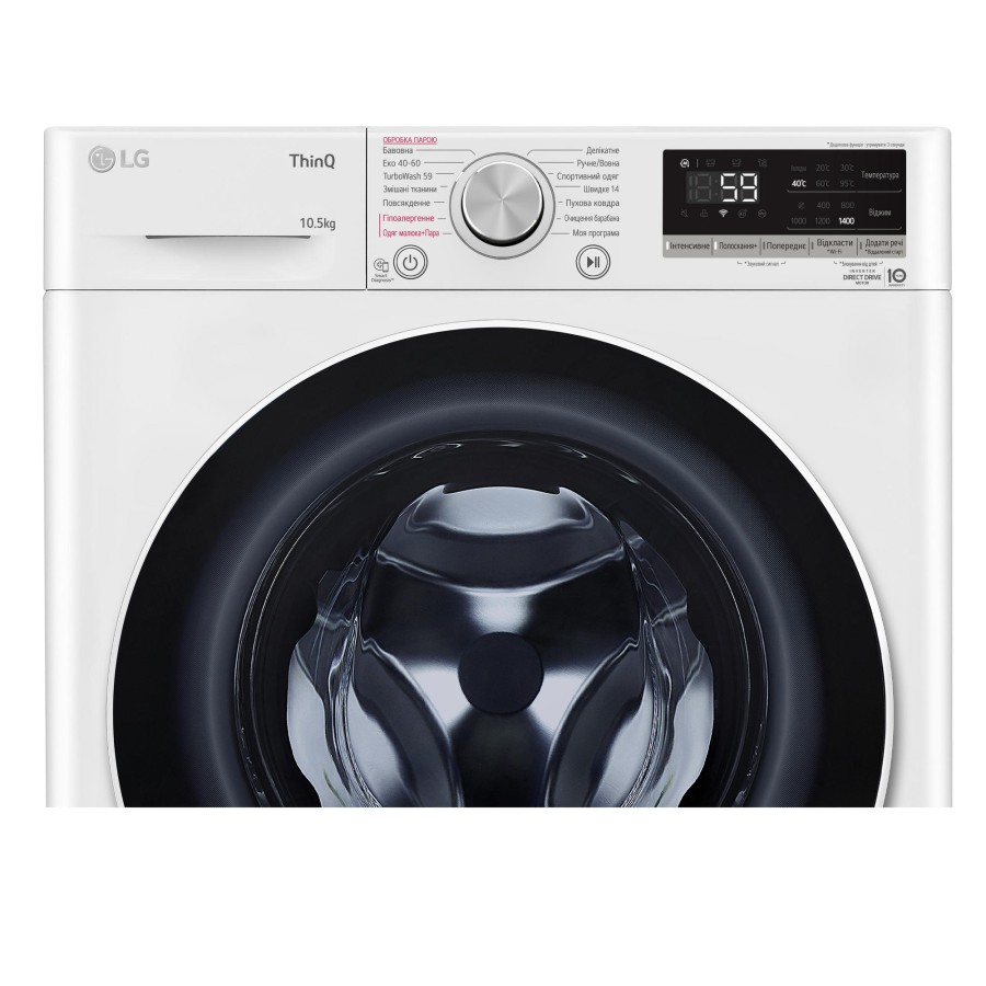 Ця стандартна пральна машина з фронтальним завантаженням має велику місткість — 10.5 кг і клас енергоефективності A+++. Вона оснащена максимальною швидкістю віджиму 1400 об/хв, що забезпечує швидке і ефективне віджимання. Технологія AI DD™ автоматично визначає властивості тканини для оптимального вибору програми прання. Функція обробки парою Steam™ допомагає зменшити зморшки, запахи і бактерії, зберігаючи одяг чистим і свіжим.