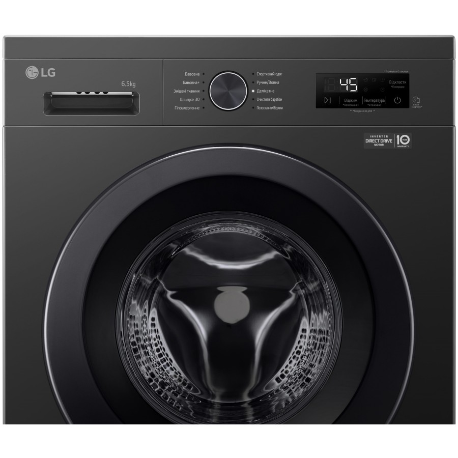 Пральна машина LG фронтальна, 6.5кг, 1200, A+++, 44см, дисплей, пара, інвертор, чорний (F2Y1WS6J)
