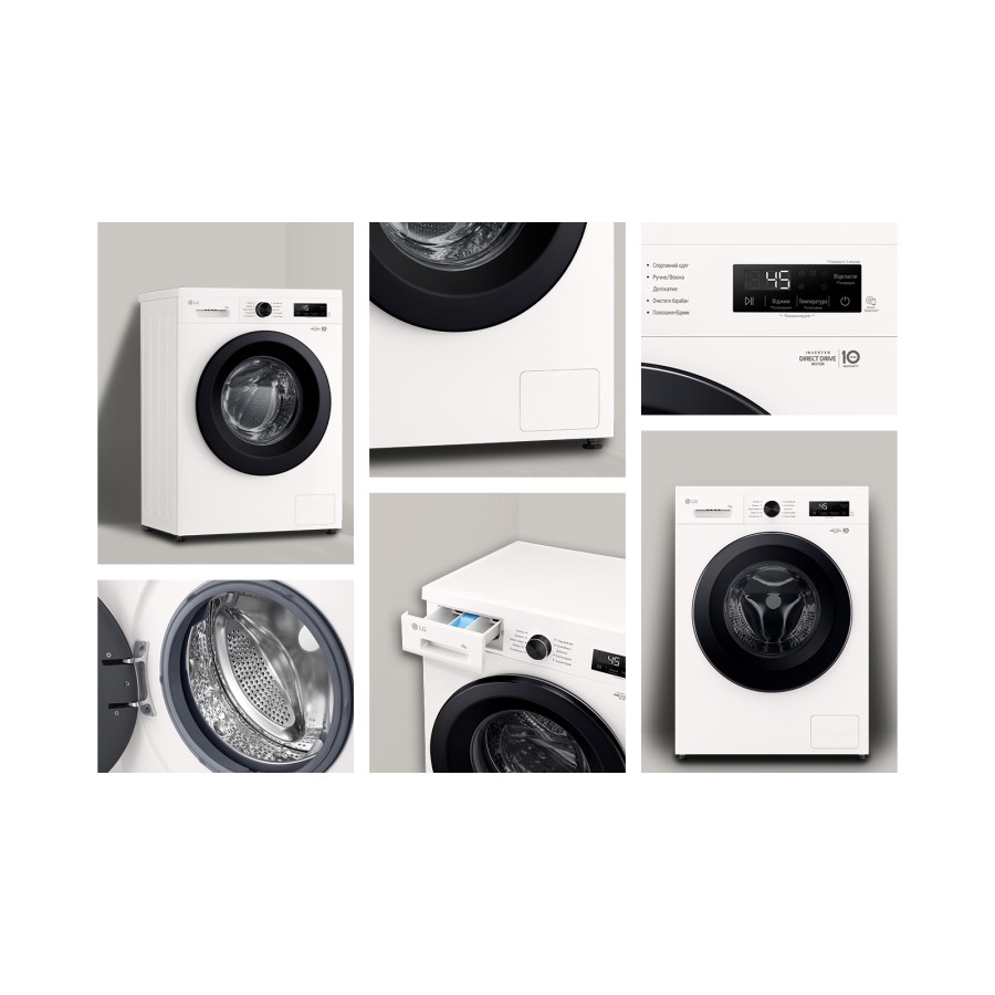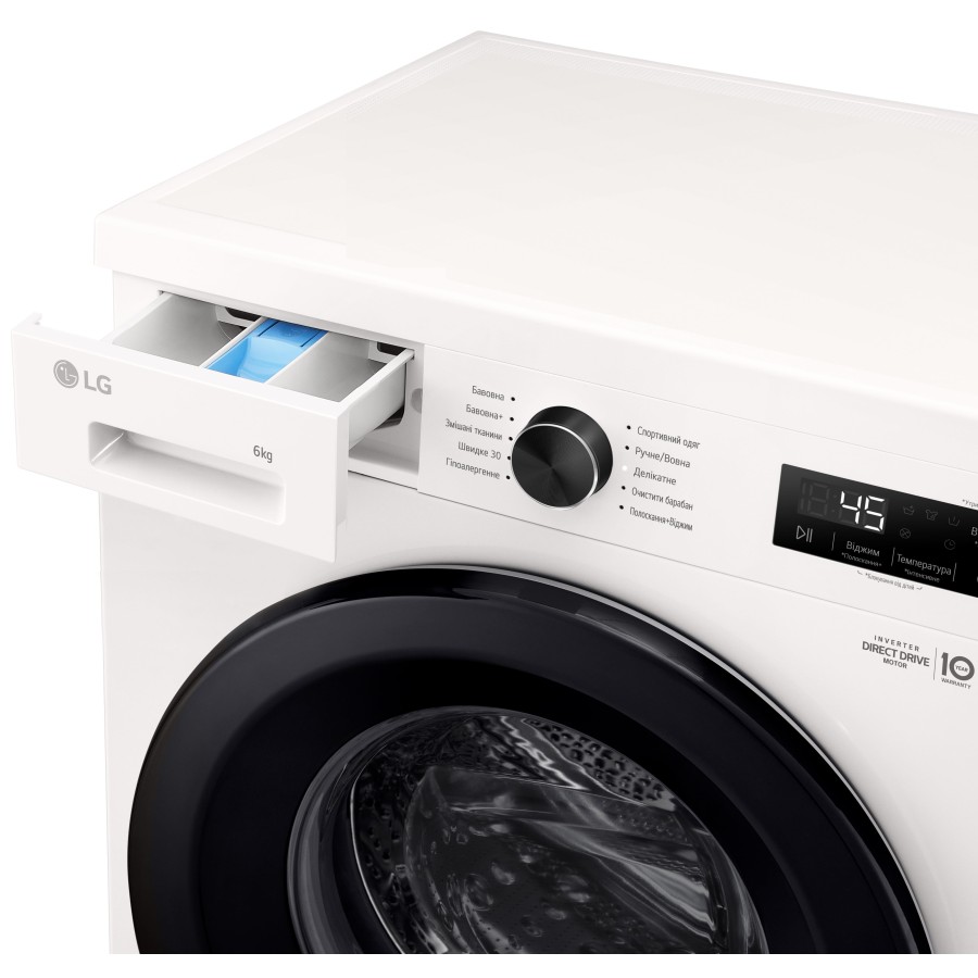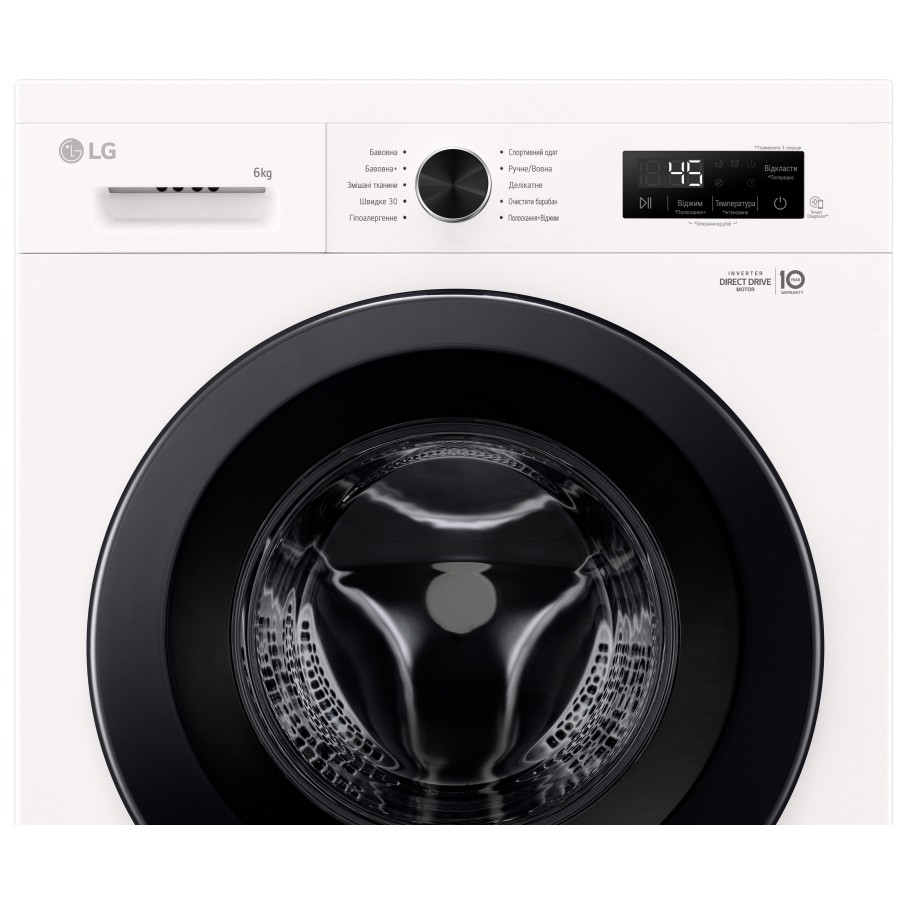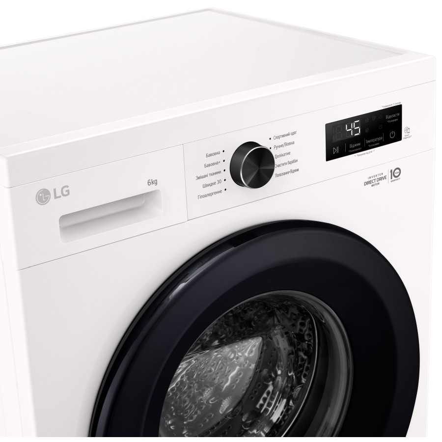 Пральна машина LG фронтальна, 6кг, 1200, A+++, 44см, дисплей, пара, інвертор, білий (F2Y1NS6W)