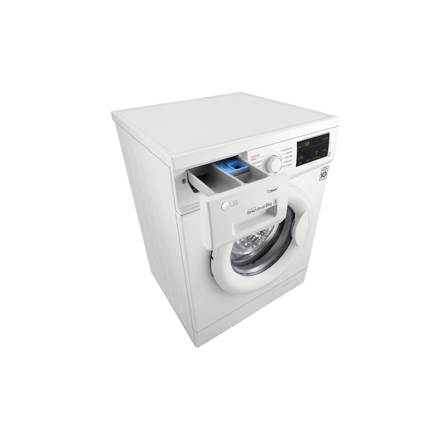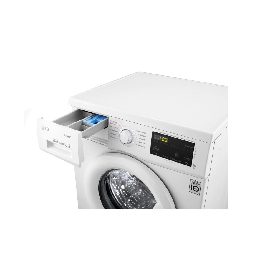 Повнорозмірна пральна машина з технологією 6 Motion™ та функцією прання парою SpaSteam™, 8 кг. Технологія 6 Motion™ — це шість різних схем руху барабана, які забезпечують максимально делікатне та ефективне прання. Складні забруднення видаляються без слідів, а одяг не пошкоджується. Пральні машини LG обладнані двигуном із прямим приводом із системою Inverter Direct Drive™. Інвертор надійніший і довговічніший, оскільки не містить деталей, які швидко зношуються. Такий двигун більш раціонально використовує електроенергію й заощаджує ресурси.