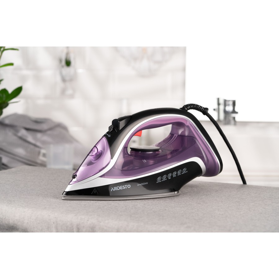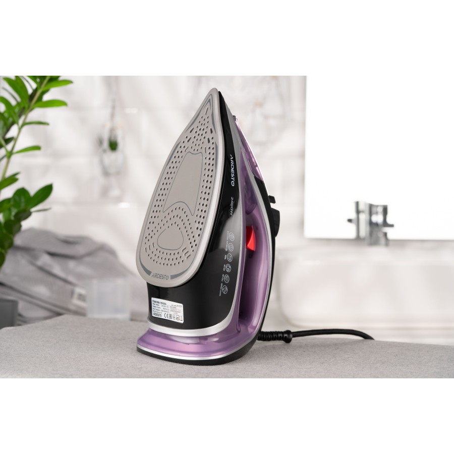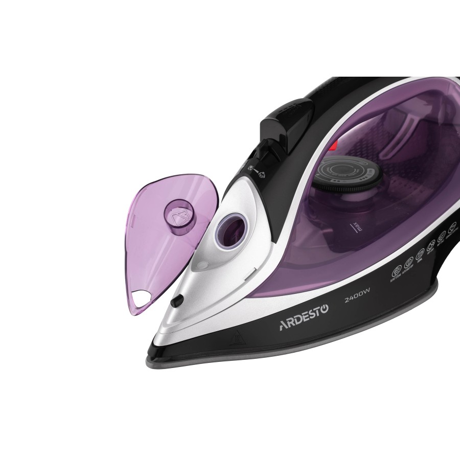 Модель ARDESTO IR-B2234 оснащено збільшеним резервуаром для води об’ємом 350 мл та ергономічною кришкою для максимальної зручності наповнення. Передбачено систему від протікання «протикапля». Стійка до пошкоджень керамічна підошва з 86 перфорованими отворами рівномірно нагрівається та плавно ковзає в будь-якому напрямку. Завдяки захисту від кальцинації буде збережено високу ефективність відпарювання та надійну роботу праски на довгі роки.