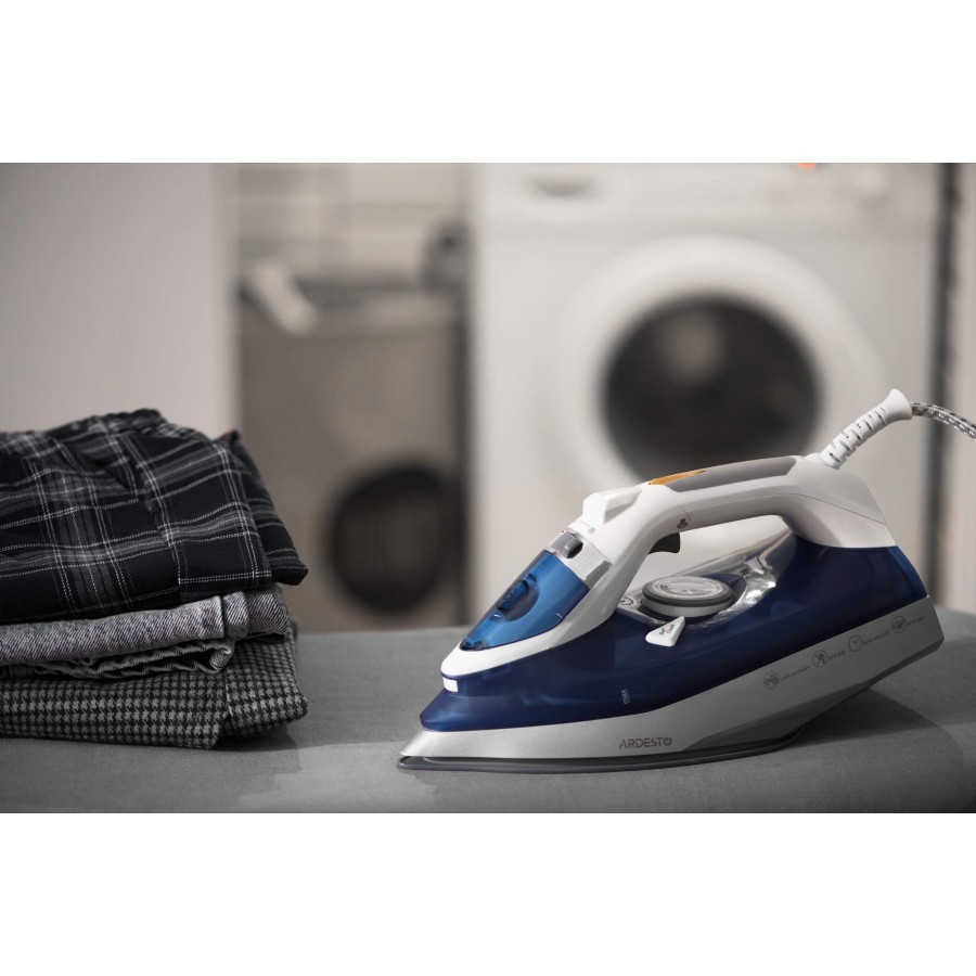 Для швидкого та легкого прасування є налаштування температури, розбризкувач води, паровий удар, а також передбачено вертикальне та горизонтальне відпарювання. Праска захищена від перегріву і підтримує самоочищення та автовідключення зі звуковим сигналом.