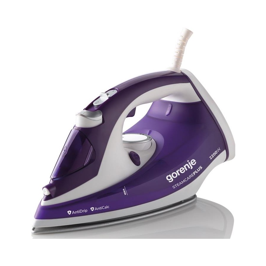 Праска Gorenje, 2200Вт, 280мл, паровий удар -90гр, верт. відпарювання, антинакип, керам. підошва, біло-фіолетовий (SIH2200BBC)