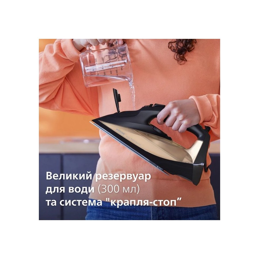 Наша система "крапля-стоп" запобігає протіканню для уникнення плям від води та впевненого прасування за будь-якої температури.