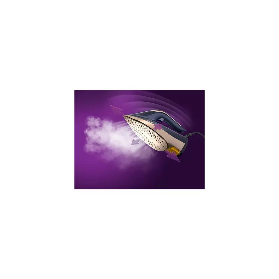Ефективне прасування з нашою новою серією Philips Azur 8000. Завдяки турборежиму подавання пари зі швидкістю 260 г ви можете за один раз розгладити навіть найскладніші складки. Одразу почніть прасувати з потужністю 3000 Вт і досягайте ідеальних результатів за допомогою безперервного подавання сильного струменя пари.