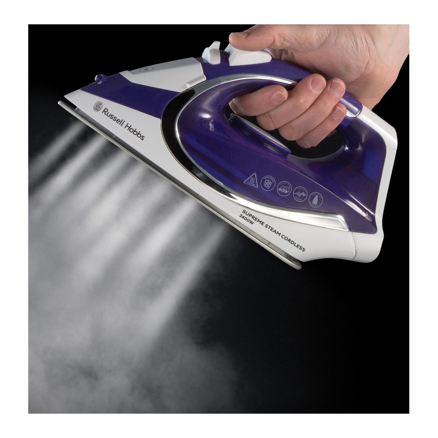 Ця неймовірна праска також обладнана функцією вертикальної пари, що ідеально підходить для розгладження одягу на вішаках, фіранок і меблів. Крім того, ви можете контролювати рівень подачі пари. Supreme Steam від Russell Hobbs - це не тільки прилад, що значно полегшить процес прасування, а й потужна праска, здатна впоратись навіть з найбільшими складками. Цей безпроблемний прилад неодмінно стане невід'ємною частиною кожного прання.