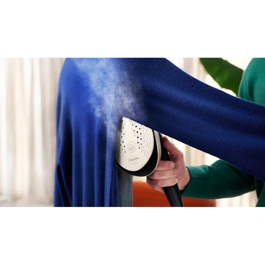 Зручне кріплення на гачок дозволяє розташовувати одяг на вішалках для вертикального відпарювання або зберігання. Гачок можна легко скласти, коли він не використовується або при горизонтальному прасуванні.