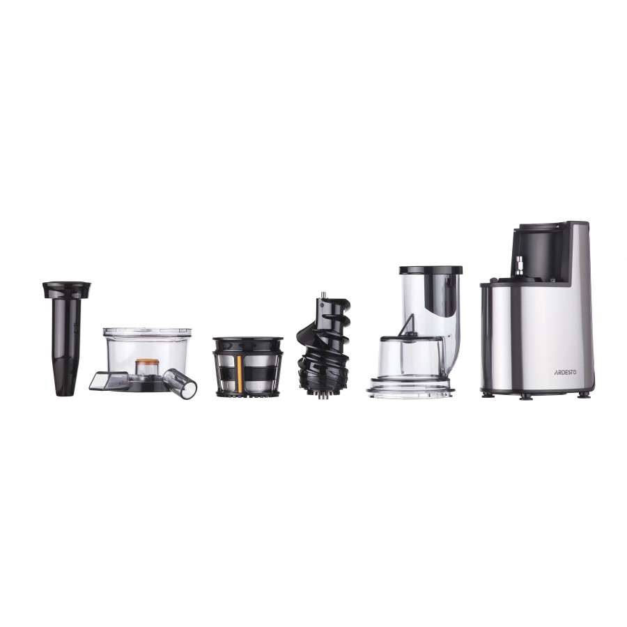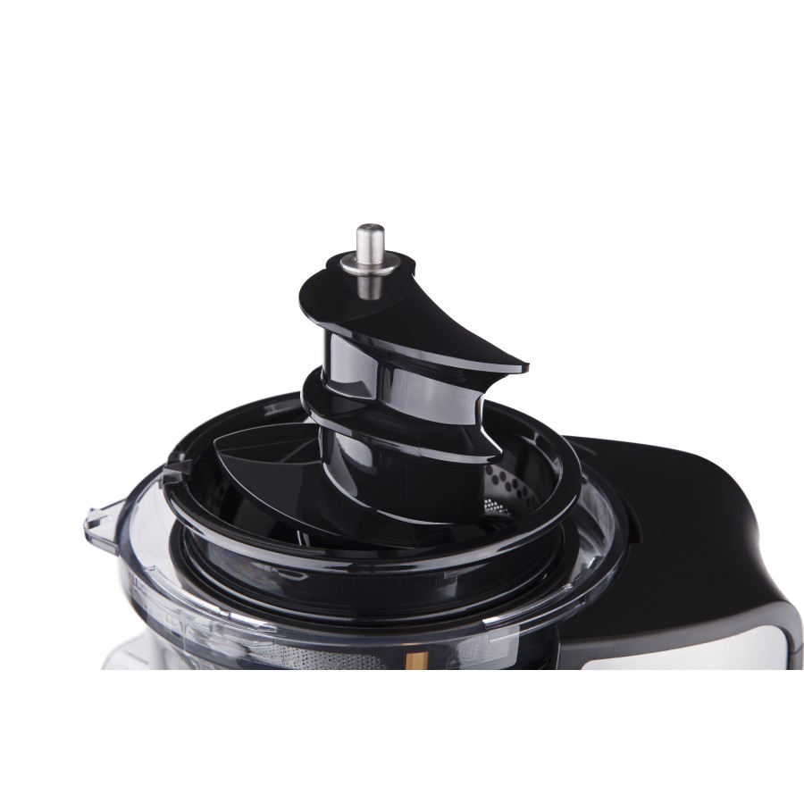 Соковитискач оснащений двигуном з потужністю 200 Вт та захистом від перегріву. Він забезпечує тихий та якісний віджим. За рахунок низькошвидкісної роботи (90 обертів на хвилину), сік не встигає окислитись та зберігає усі корисні властивості, вітаміни і корисні речовини. Функція реверсу забезпечує максимальну продуктивність під час приготування напоїв.