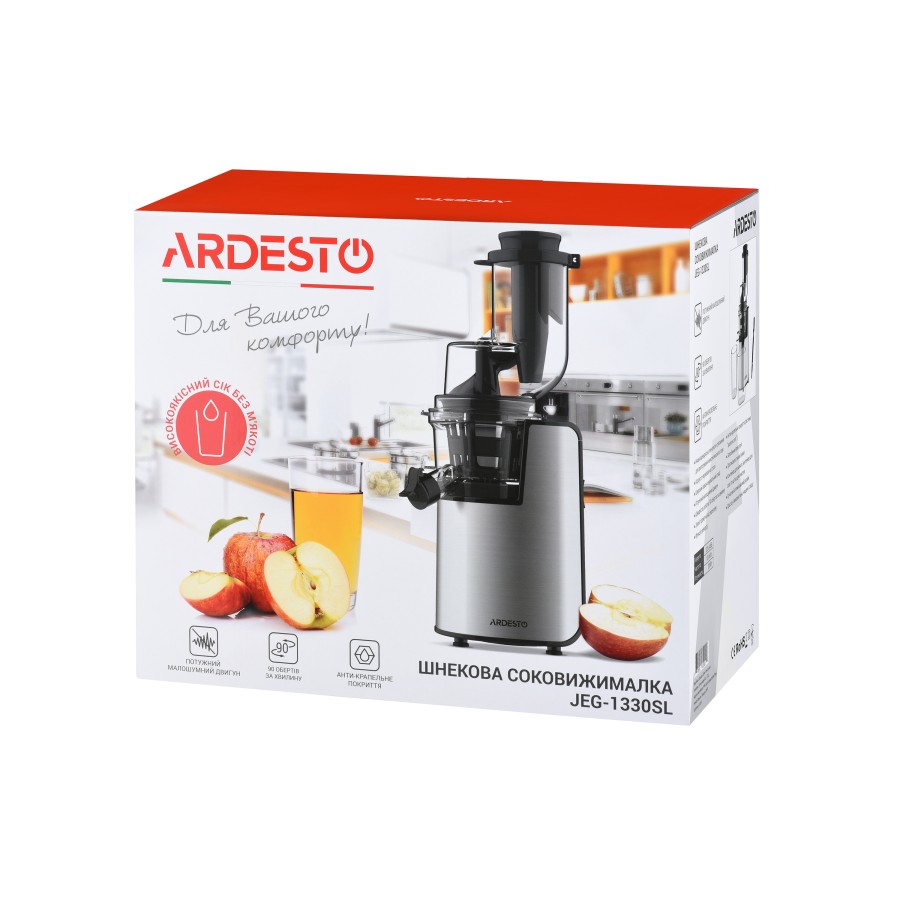 Розроблений італійськими дизайнерами, соковитискач Ardesto JEG-1330SL виконаний з якісного полікарбонату та нержавіючої сталі зі шліфованою текстурою. Це поєднання підкреслює надійність та витонченість стилю, який прикрасить будь-який інтер'єр.