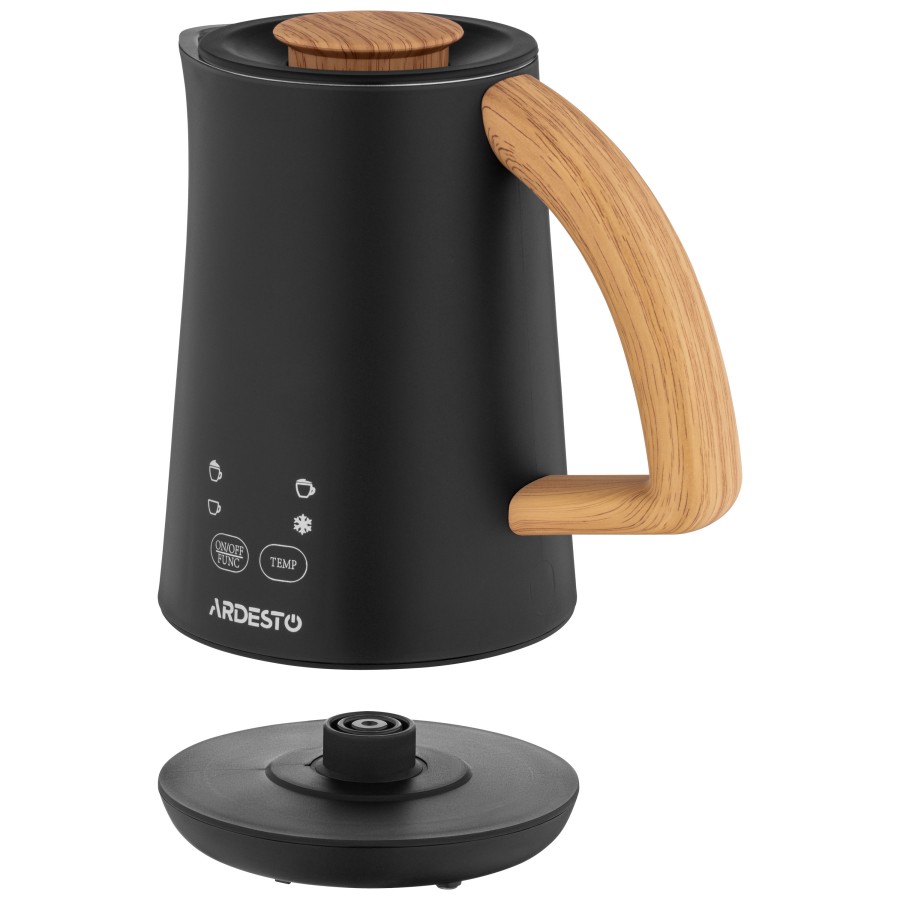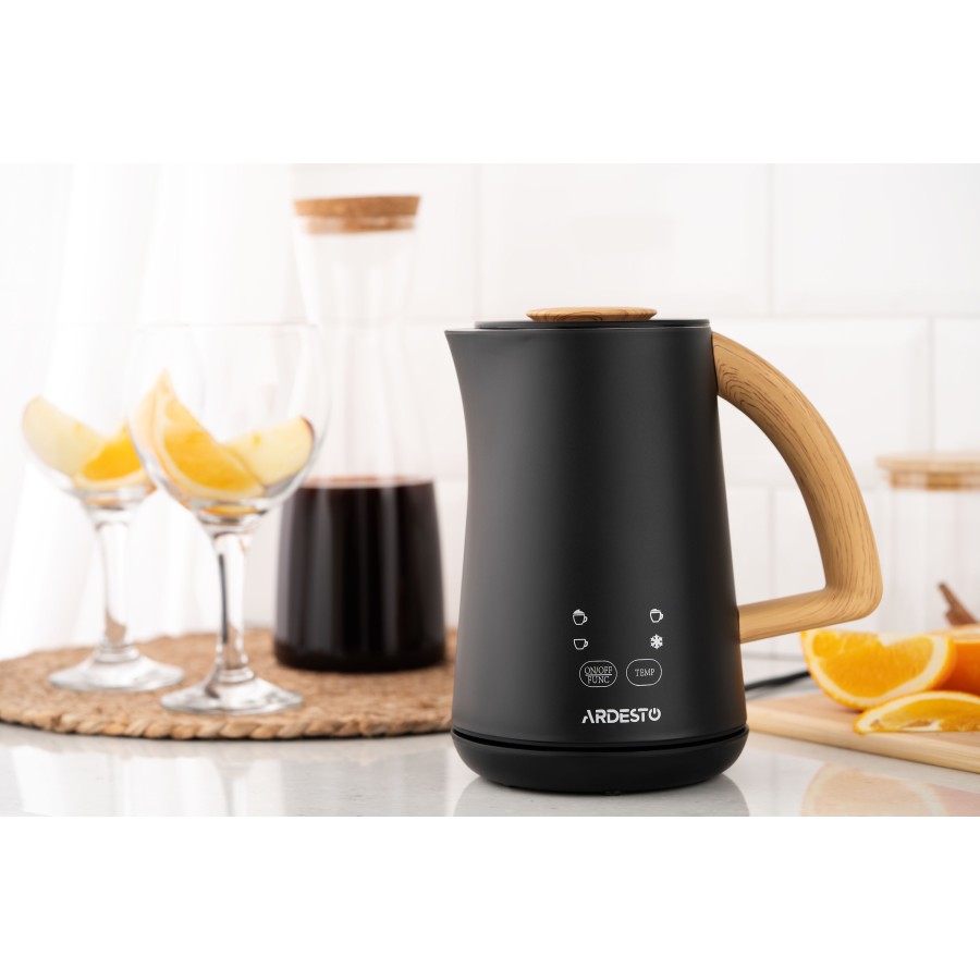 Як уже зазначалося, пристрій має чотири режими роботи, проте дійсно особливим його робить один із них. Функція підігрівання молока або іншої рідини до фіксованої температури (45/60/70/80 °C) перетворює ARDESTO MBC-Y500B на своєрідний невеликий чайник. Цей режим якнайкраще згодиться для підігрівання води для чаю або кави, молока для дитячих коктейлів, навіть вина для глінтвейну, без ризику перегрівання чи википання, адже пристрій автоматично вимикається після досягнення заданої температури. А ще більшу зручність використання гарантує особливість конструкції: якщо здебільшого MBC-Y500B слугує як «чайник», то пластикове коліщатко спінювача, яке розташовано на дні, можна легко вийняти, а застосувати винятково за потреби спінити молоко.