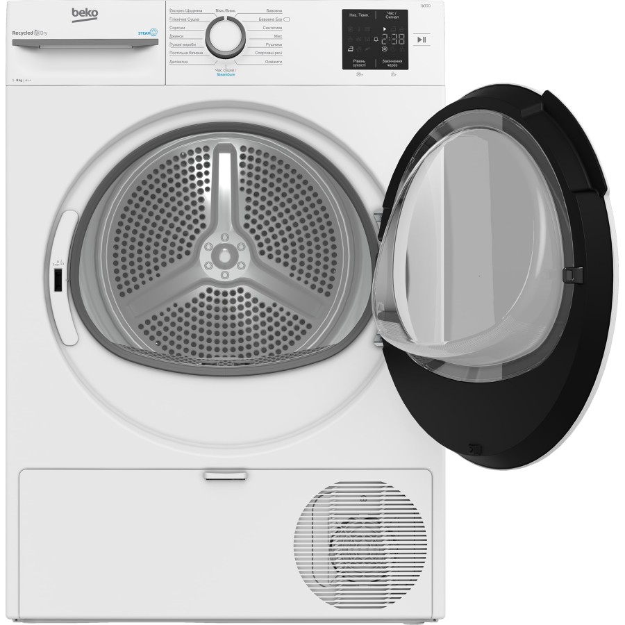Сушильна машина Beko тепловий насос, 8кг, A++, 55см, дисплей, підсвітка барабану, пар, білий (BM3T38239WW)