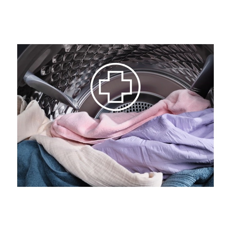 Робоча температура програми "Гігієна" становить вище 60 ° C, завдяки чому не тільки висушується білизна, але й усуваються 99,9% бактерій та вірусів.