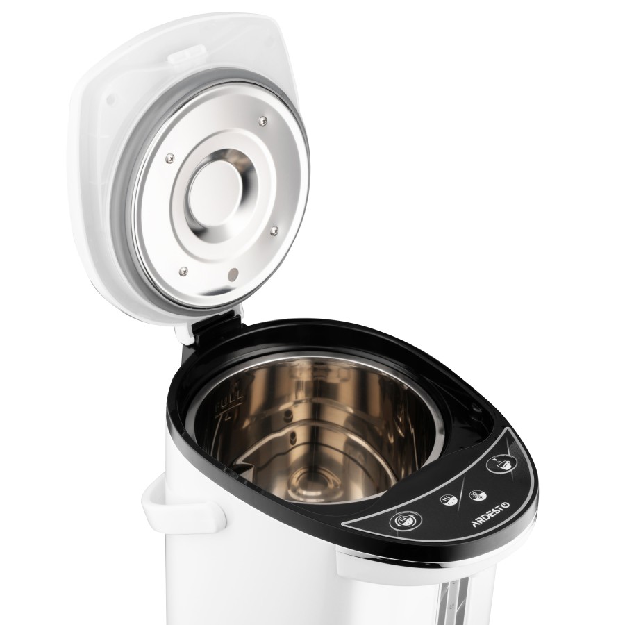 Внутрішню ємність виготовлено з нержавіючої сталі SUS304 – запорука якості та безпечності використання. Термопот має захист від перегрівання і роботи без води, гарантуючи максимальну безпеку для користувачів.