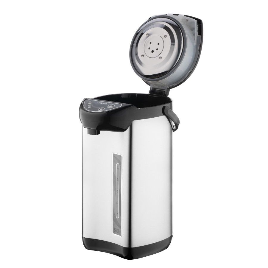 Внутрішню ємність термопота виготовлено з якісної нержавіючої сталі SUS304, тож довговічність і безпечність використання гарантовано. Прихований нагрівальний елемент захищено від пошкоджень, а система безпеки запобігає перегріванню і роботі пристрою без води.