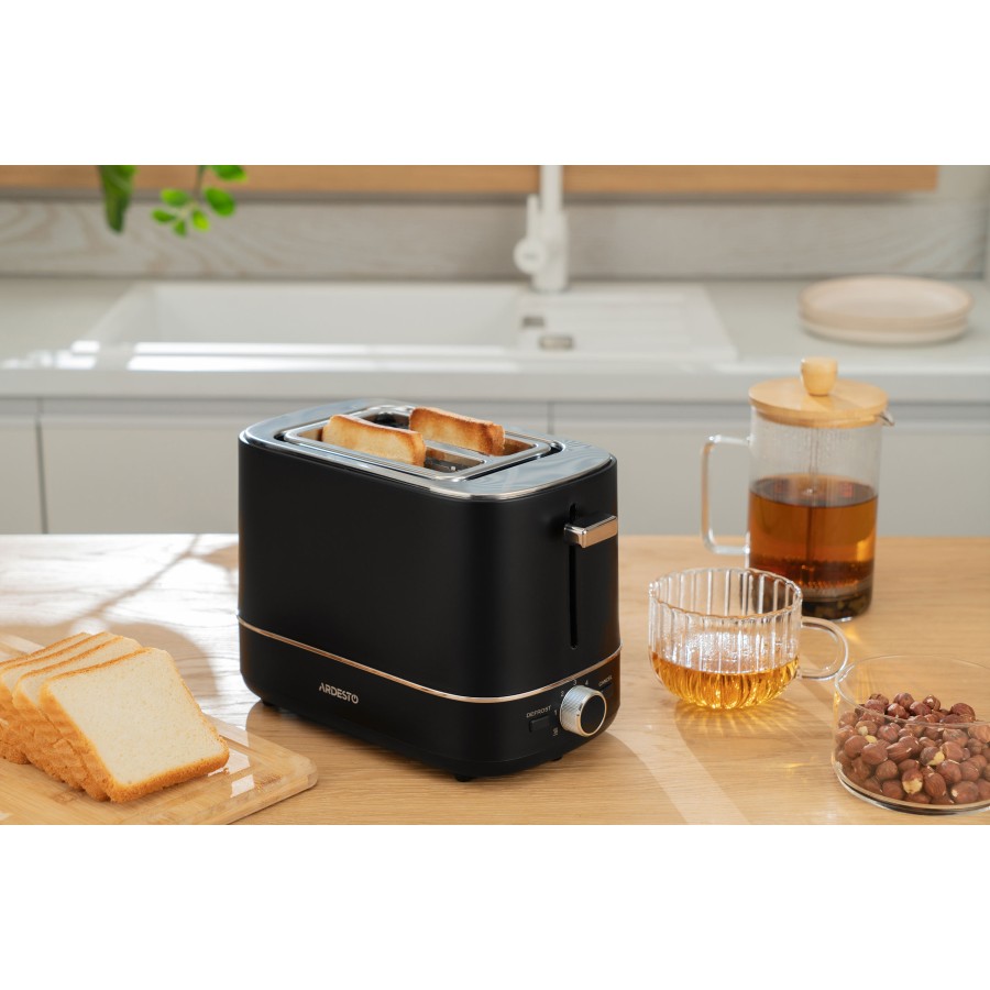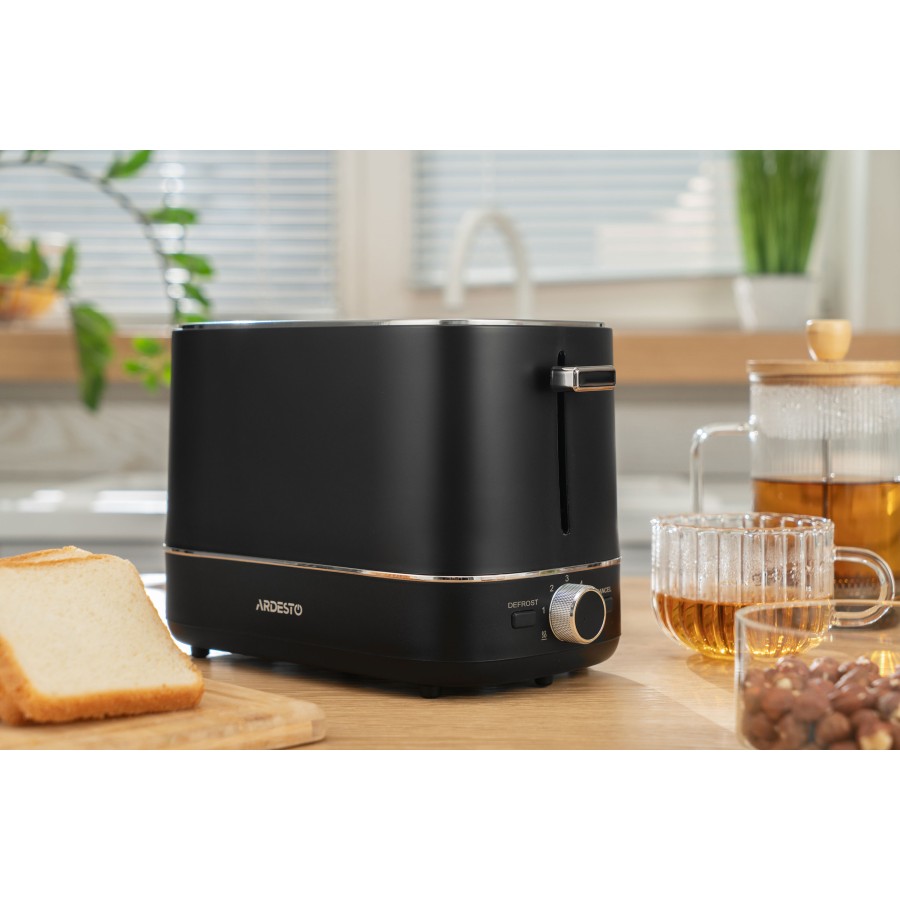 Тостер ARDESTO – стильний помічник на кухні, який має потужність 780–930 Вт. Завдяки двом слотам та автоматичному центруванню можна приготувати два рівномірно обсмажені тости одночасно. 7 ступенів обсмажування, функції підігрівання, розморожування та автоматичного подавання скибочок забезпечують комфорт і зручність приготування. Завдяки системам захисту від застрягання Anti-jam і перегрівання, а також функції скасування для миттєвого припинення готування користування пристроєм є безпечним і простим. Знімний піддон для крихт і нековзна основа зумовлюють практичність.