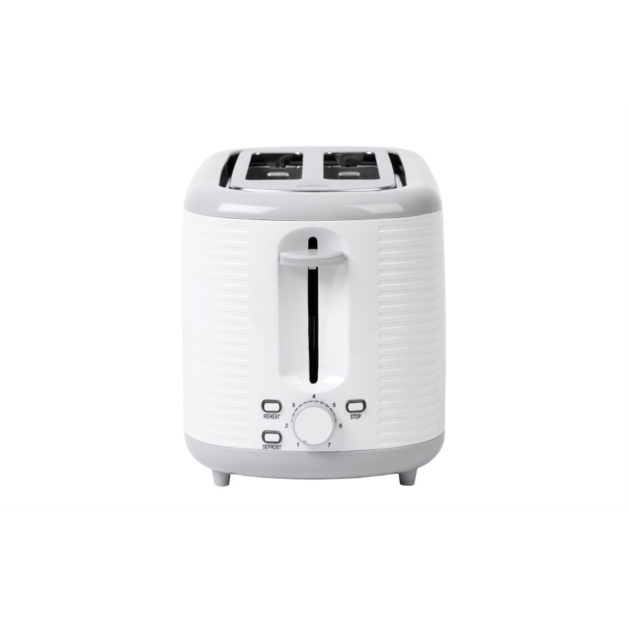 Обсмаження хлібу відбувається з двох сторін, тостер підтримує сім режимів нагріву з автоматичним викидом тостів після приготування. Для збору крихт є знімний лоток.