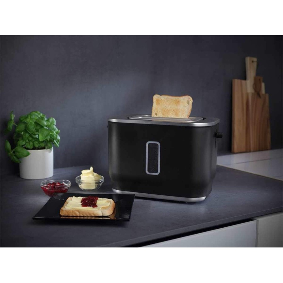 Важіль для підйому дозволяє легко витягувати тости. Глибокі і широкі отвори підходять не тільки для підсмажування скибочок хліба – туди помістяться навіть бейгли. Крім того, ви можете зручно підігрівати круасани і листкові булочки на спеціальній решітці.