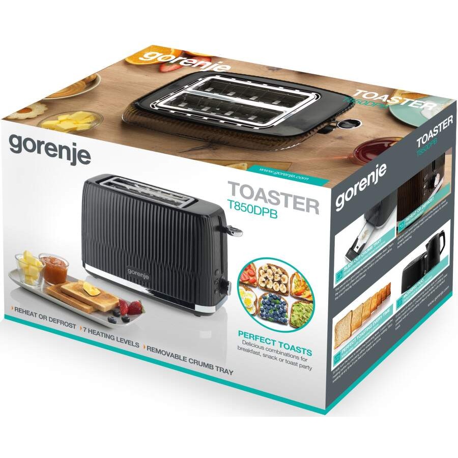 Тостер Gorenje, 850Вт, пластик/метал, чорний (T850DPB)