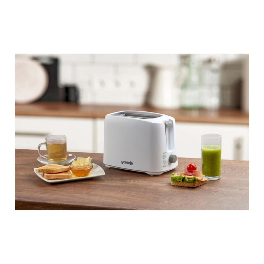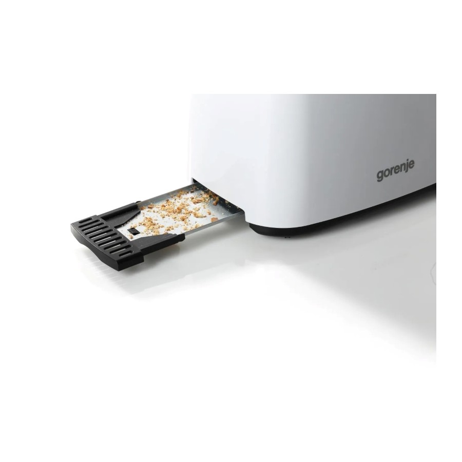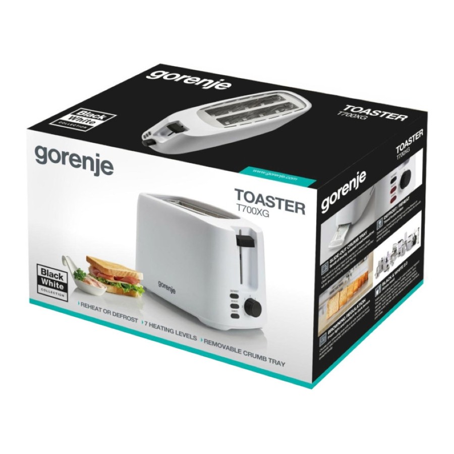 Тостер Gorenje T700XG має сім температурних режимів: тост буде запечений рівно настільки, наскільки ви хочете. Тостер має функцію підігріву і розморожування. Заморожені скибочки хліба будуть рівномірно підсмажені та швидко приготовані. Якщо ваше бажання зміниться під час процесу, використовуйте функцію скасування. Ваш тост завжди буде рівномірно підсмажений. Секрет ідеального тосту полягає у чистому тостері. Щоб уникнути горілого запаху, регулярно очищайте піддон від крихт, і на кухні буде пахнути тільки свіжими тостами.