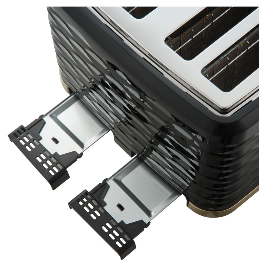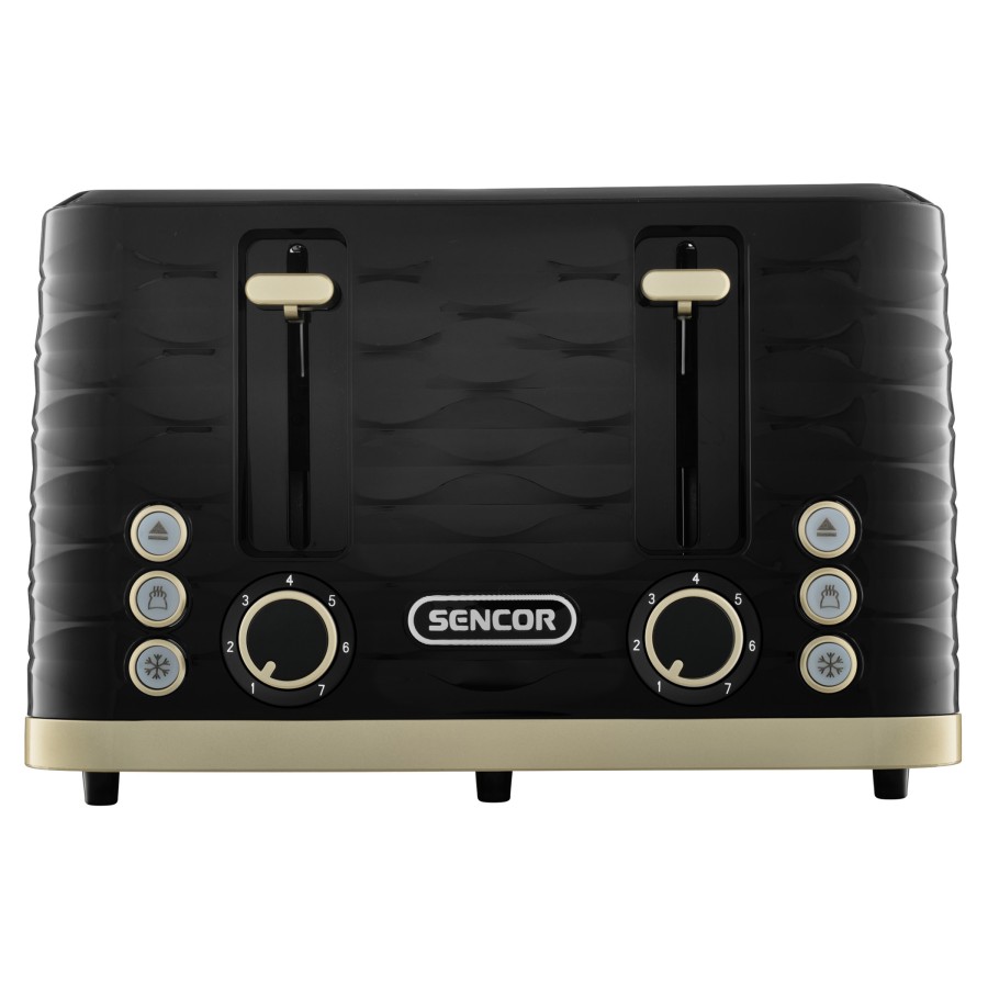 Тостер Sencor 1600Вт, підігрів, розморожування, 4 слоти, пластик, чорно-золотий (STS7551BK)