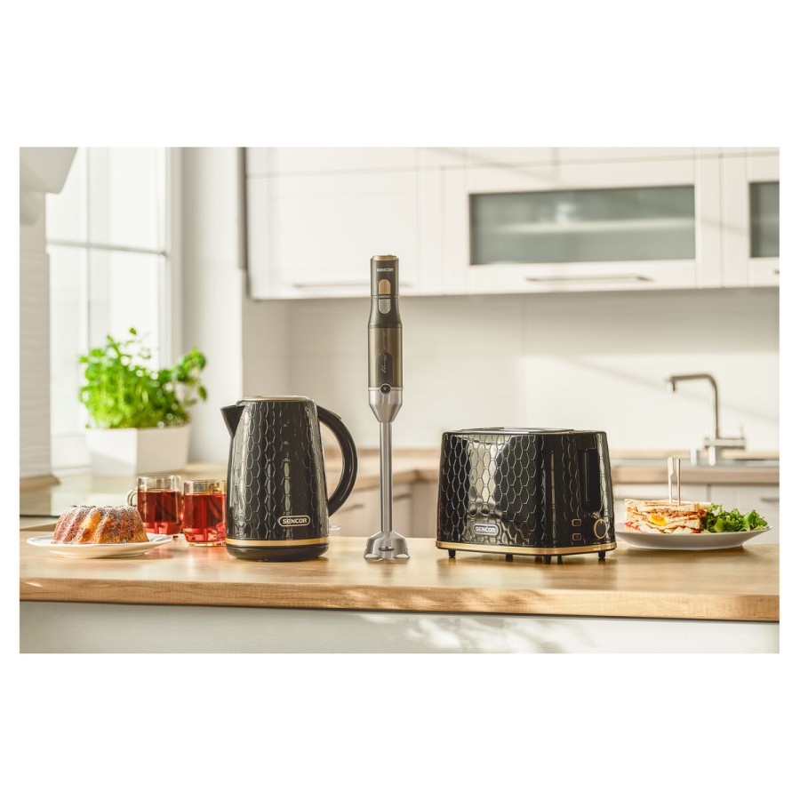 Тостер Sencor 930Вт, підігрів, розморожування, пластик, чорно-золотий (STS7201BK)