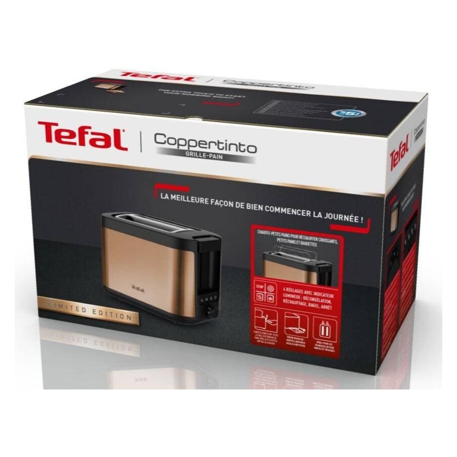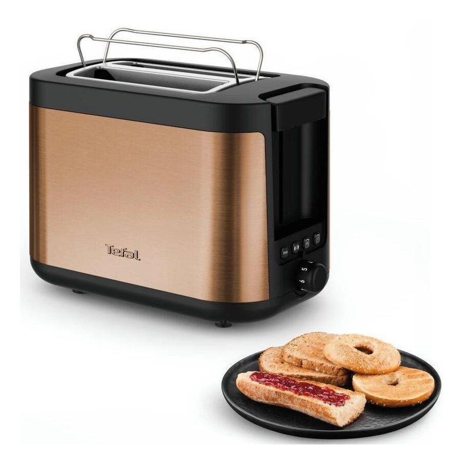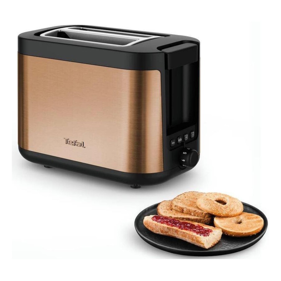 Тостер Tefal Coppertinto TT430G10 — це стильний та функціональний прилад для вашої кухні. Завдяки потужності 850 Вт та 7 рівням обсмажування, ви можете налаштувати ступінь підсмажування за власним смаком. Широкі слоти з автоцентруванням забезпечують рівномірне обсмажування навіть товстих скибок хліба.