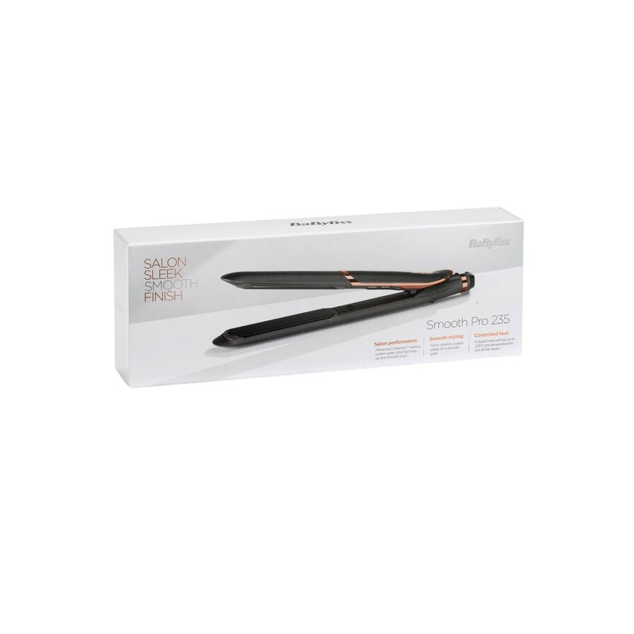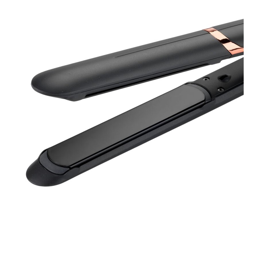 Індикатор температури дозволяє контролювати нагрів пластин. Пластини забезпечують рівномірне притискання волосся, що запобігає його пошкодженню. Нано-керамічне покриття пластин забезпечує легке ковзання по волоссю.