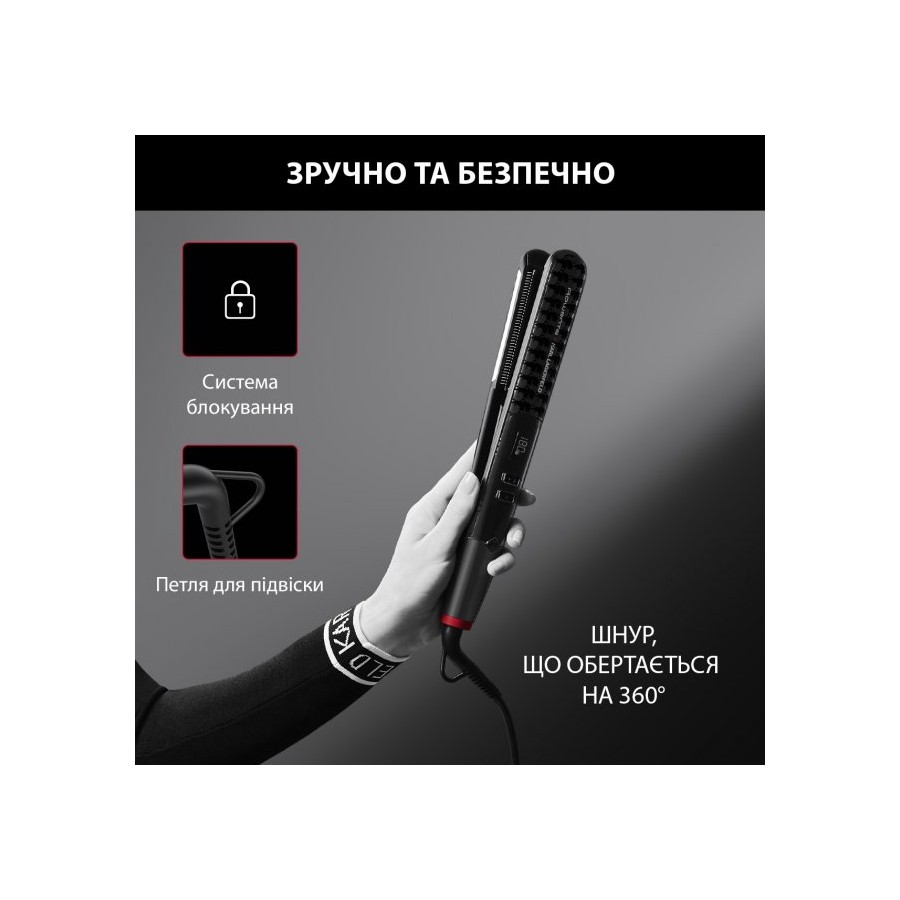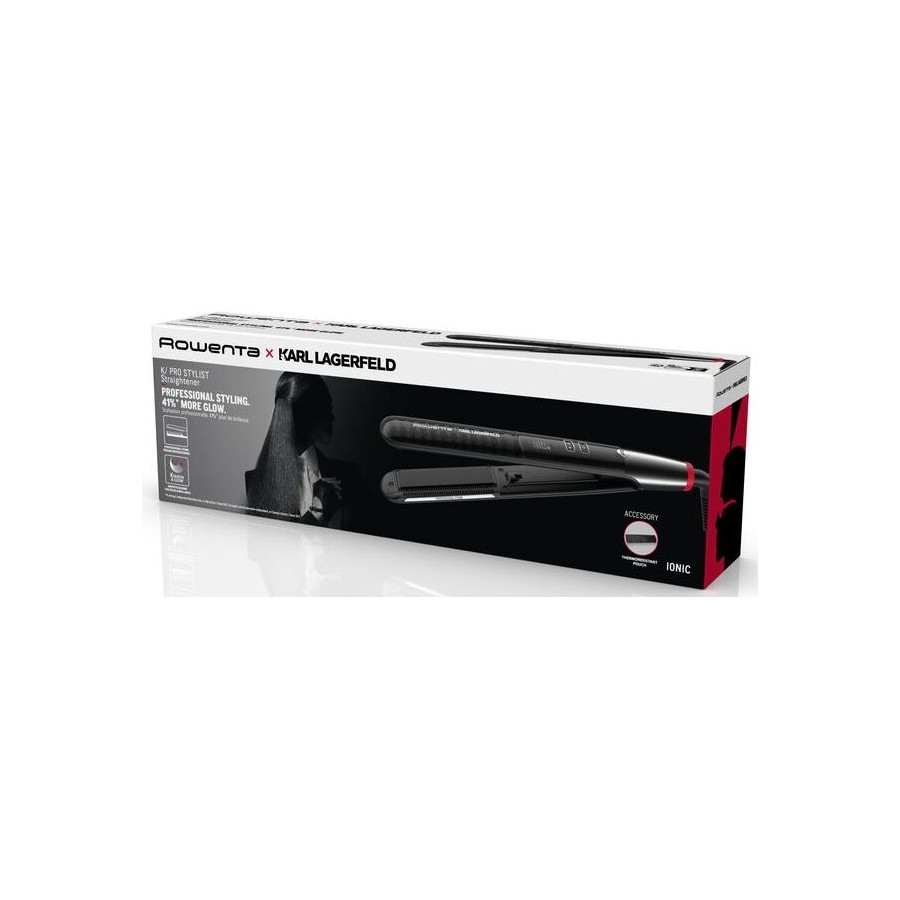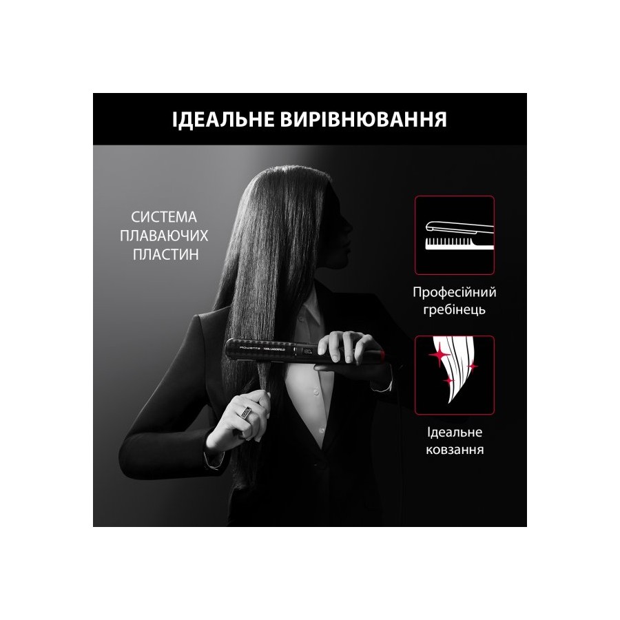 Випрямляч для волосся Rowenta x KARL LAGERFELD K/Pro Stylist Straightener SF466LF0. Колекція преміум-класу Rowenta x KARL LAGERFELD містить передову технологію, яка проста у використанні та дозволяє створювати бездоганний образ, щоразу пропонуючи безмежні можливості, впевненість та стиль. Наша співпраця – це універсальна колекція продуктів, створена для людей, які щодня хочуть мати результати з перукарні чи барбершопу. Всі вироби виконані у преміальному дизайні чорного кольору із фірмовим візерунком KARL LAGERFELD.