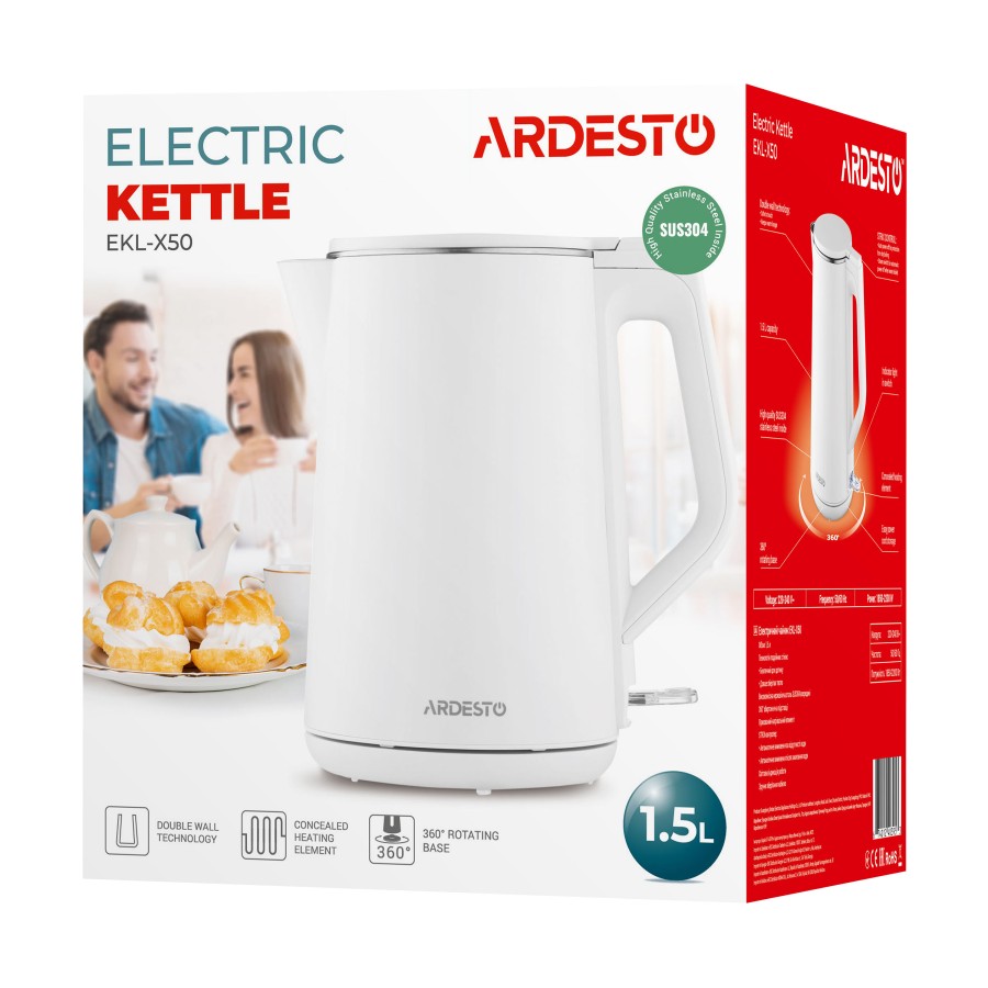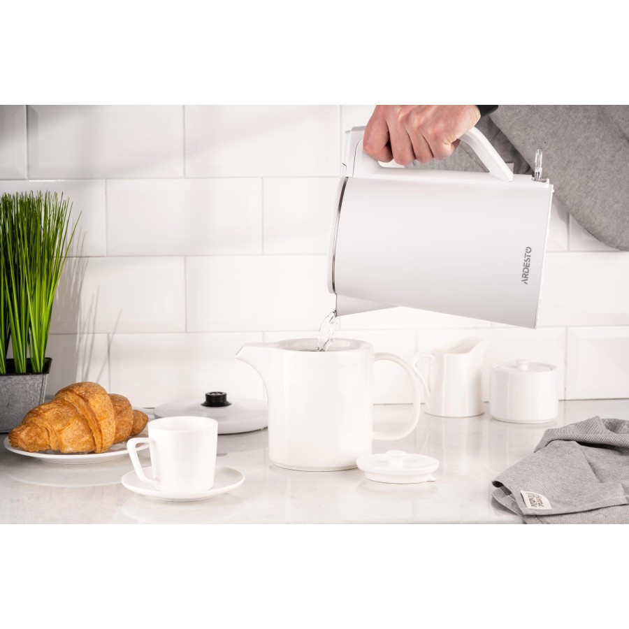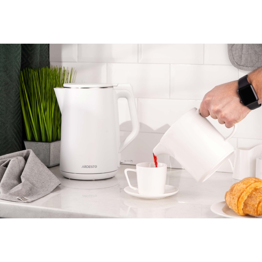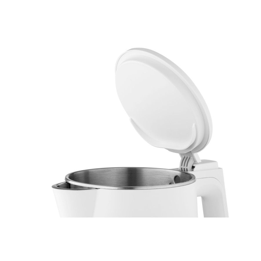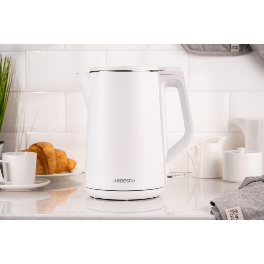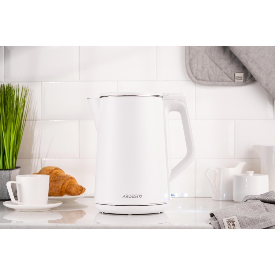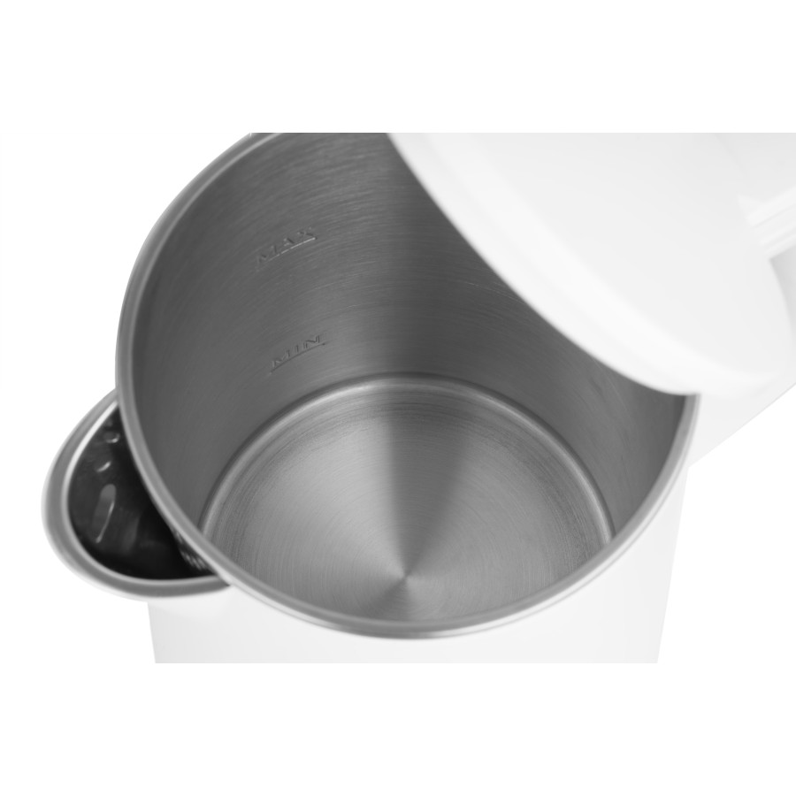 Безпечний пристрій оснащений функцією Strix-контроль і витримує до 12 000 циклів закипань. У комплектації – база з обертанням на 360°. Передбачено захист від включення без води та автоматичне вимкнення під час закипання. Роботу чайника супроводжує світлова індикація. Модель має ручку для комфортного використання як лівою, так і правою рукою. Завдяки корпусу білого кольору з безпечного та міцного пластику буде доречним на будь-якій кухні.