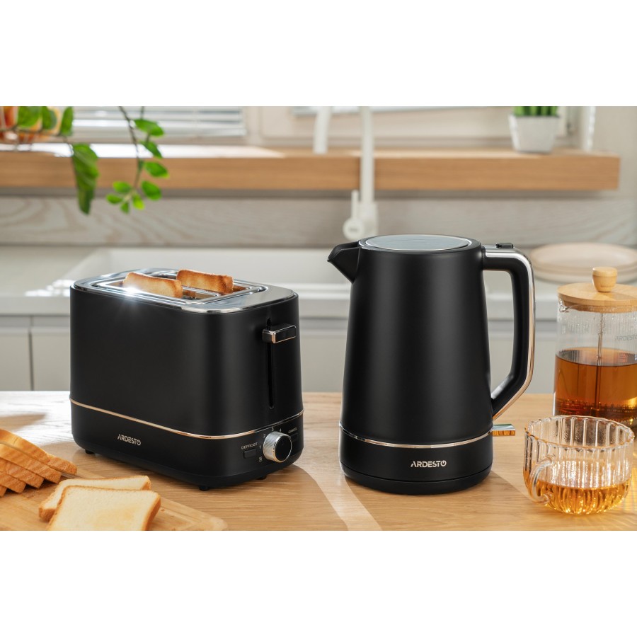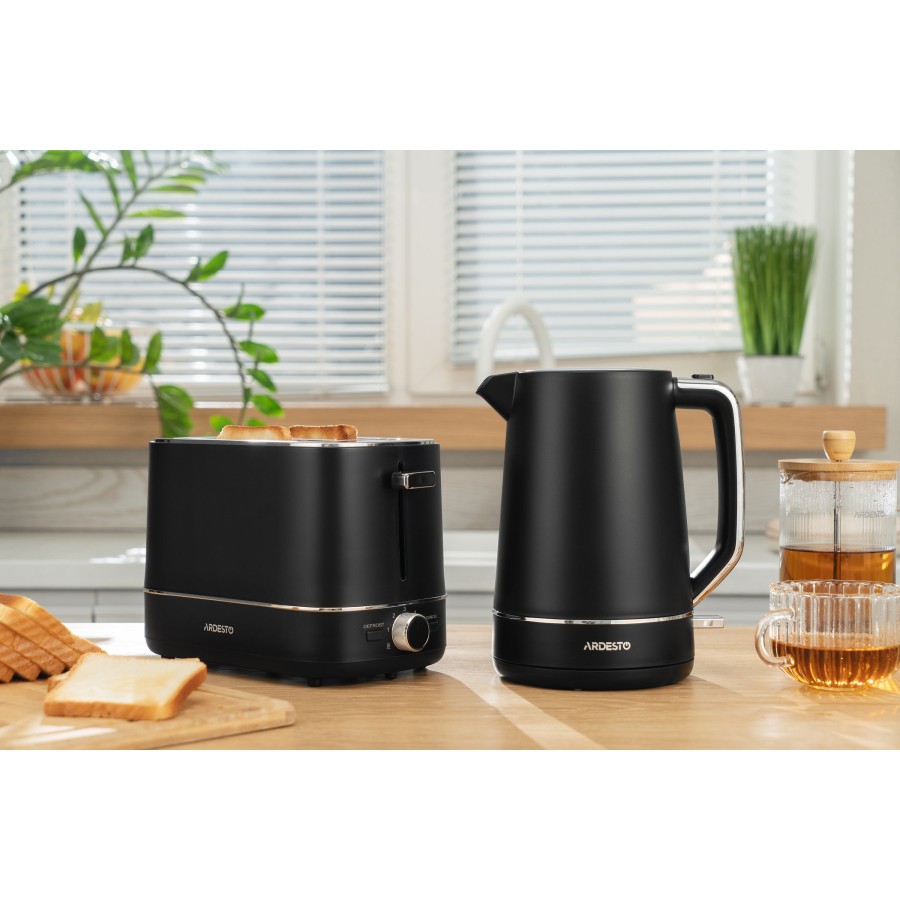 Електрочайник ARDESTO – стильний і функціональний пристрій, який є незамінним аксесуаром на кожній кухні. Із матовим чорним корпусом із пластику та можливістю обертання на базі на 360° він не тільки приваблює дизайном, але і зручний під час користування. Об’єм моделі становить 1,7 л. Прихований нагрівальний елемент і світловий індикатор роботи забезпечують швидке та безпечне кип’ятіння. Завдяки Otter-контролеру чайник автоматично вимикається після закипання або за браку води, а знімний фільтр і продумана система зберігання кабелю додають зручності. Потужність 1 850–2 200 Вт – запорука швидкого приготування окропу.