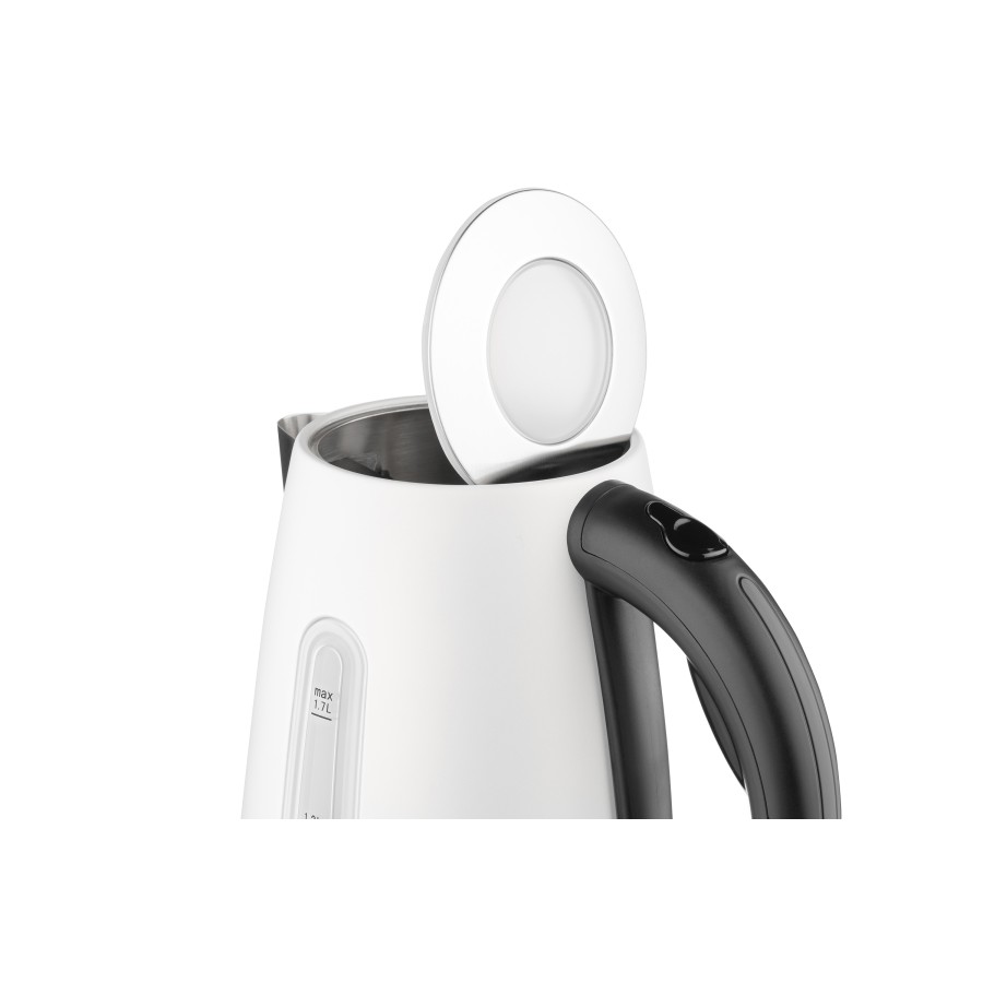 Для комфортного використання є зручна ручка з клавішею відкриття кришки. За включення відповідає окрема клавіша, розташована в нижній частині чайника. Довжина дроту підставки складає 80 см. Робота чайника супроводжується LED-підсвічуванням прозорої шкали з відмітками об’єму.
