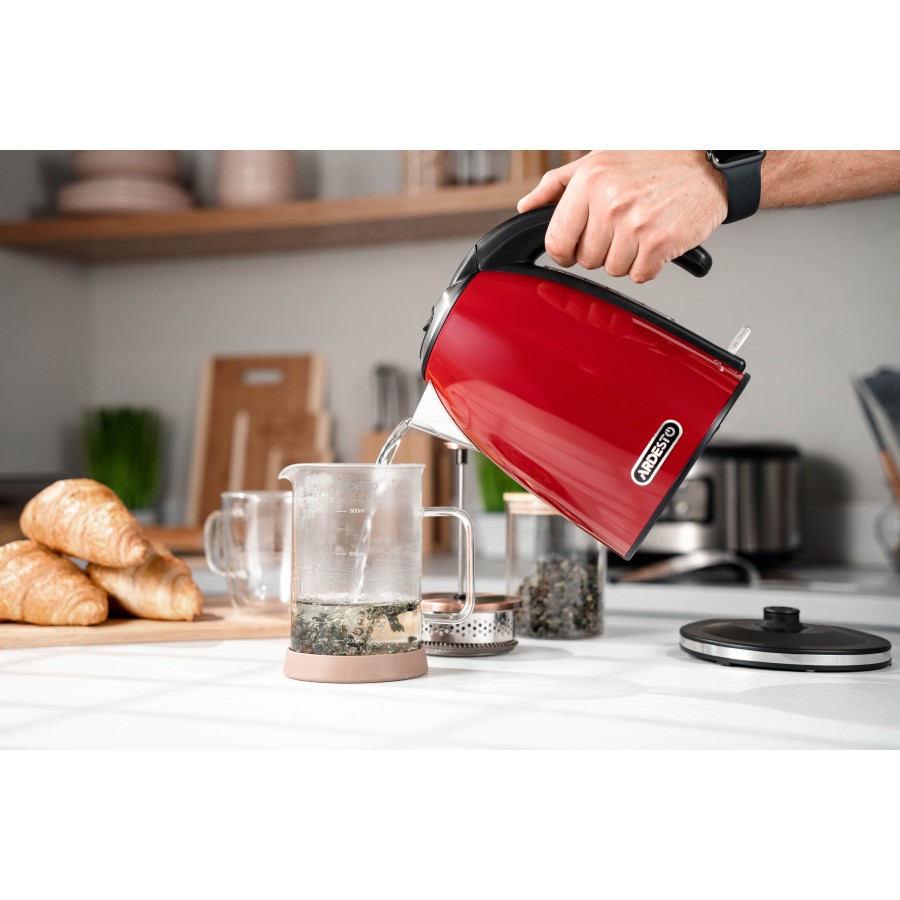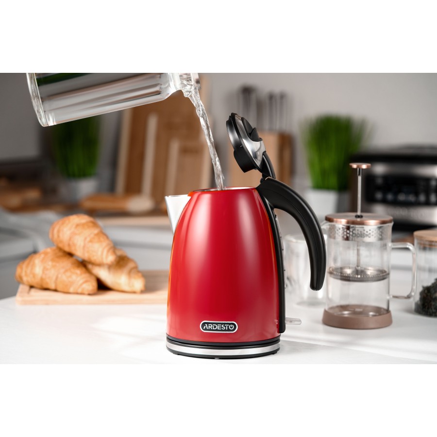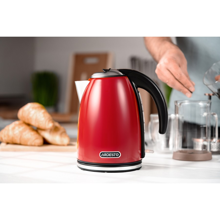 Завдяки червоному кольору ARDESTO EKL-F340R пасуватиме будь-якій кухні. Модель виготовлено з міцного матеріалу – нержавіючої сталі, тому електрочайник довго матиме гарний вигляд. Виробник застосував дизайнерський підхід, оснастивши модель світловим індикатором на клавіші вмикання. Чітка шкала рівня води забезпечує гарну видимість кількості рідини в чайнику.