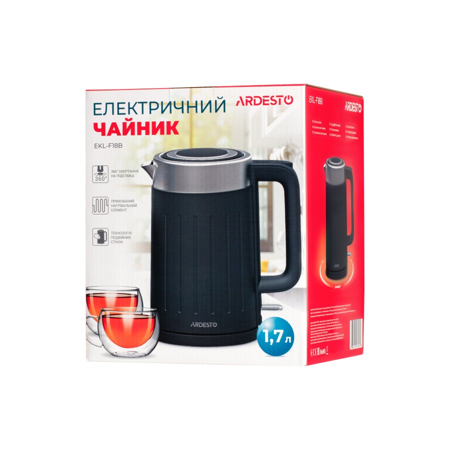 Електрочайник Ardesto 1.7л, Strix, подвійні стінки, чорний матовий (EKL-F18B)