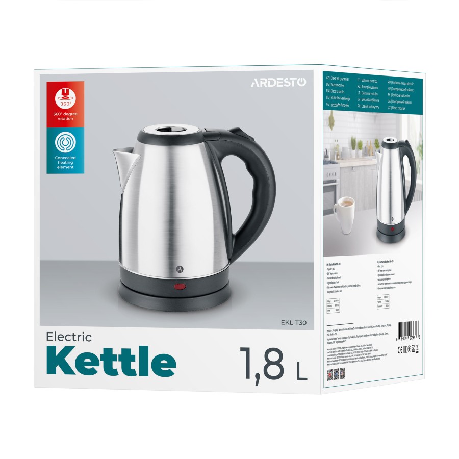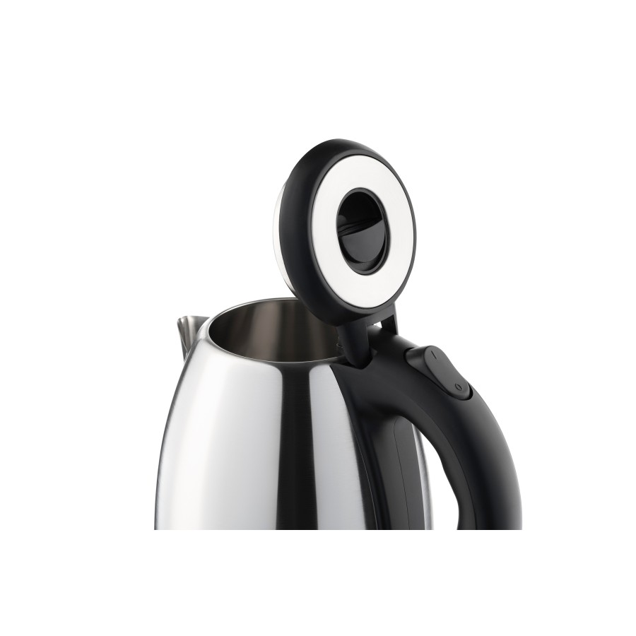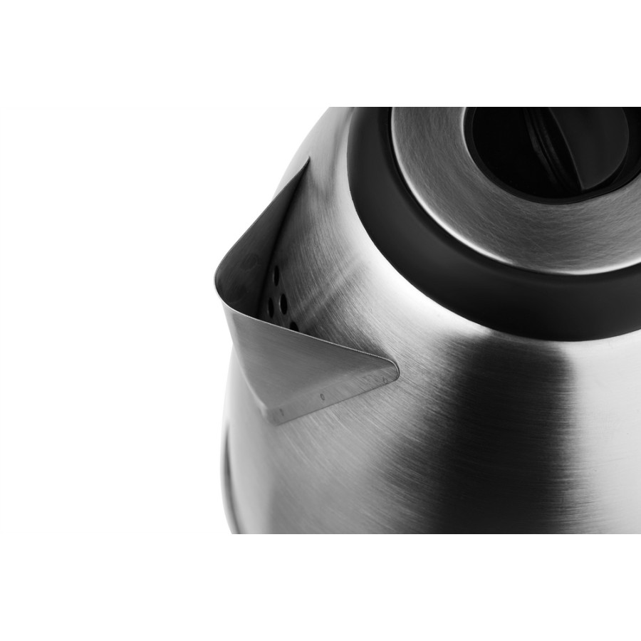 Для відкриття кришки є зручна ручка, а за включення відповідає окрема клавіша. Довжина дроту підставки складає 60 см. Нагрівальний елемент – прихований. Його ефективне розташування разом з потужністю у 1500 Вт забезпечує швидке досягнення заданої температури. Для безпечного використання передбачено автоматичне відключення після закипання та при відсутності води.