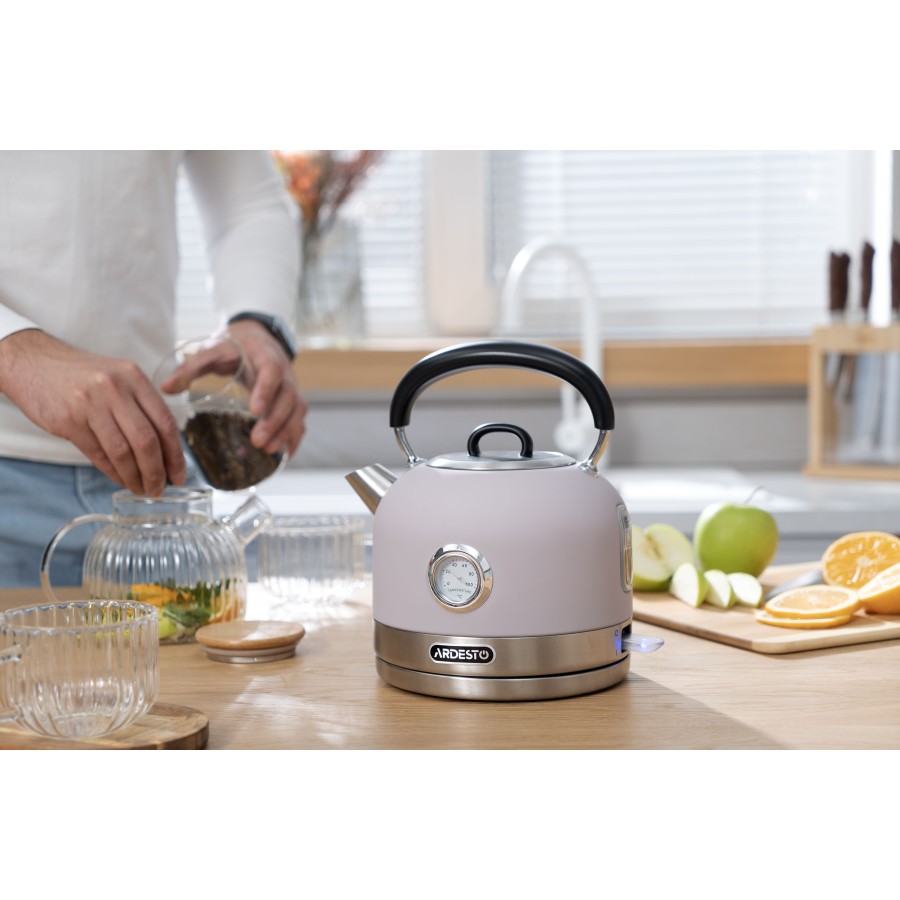 Можливість обертання чайника на підставці на 360° зумовлює зручність користування незалежно від місця його встановлення. Прихований нагрівальний елемент забезпечує швидке нагрівання води та простоту очищення. Світловий індикатор роботи допоможе легко визначити стан пристрою.
