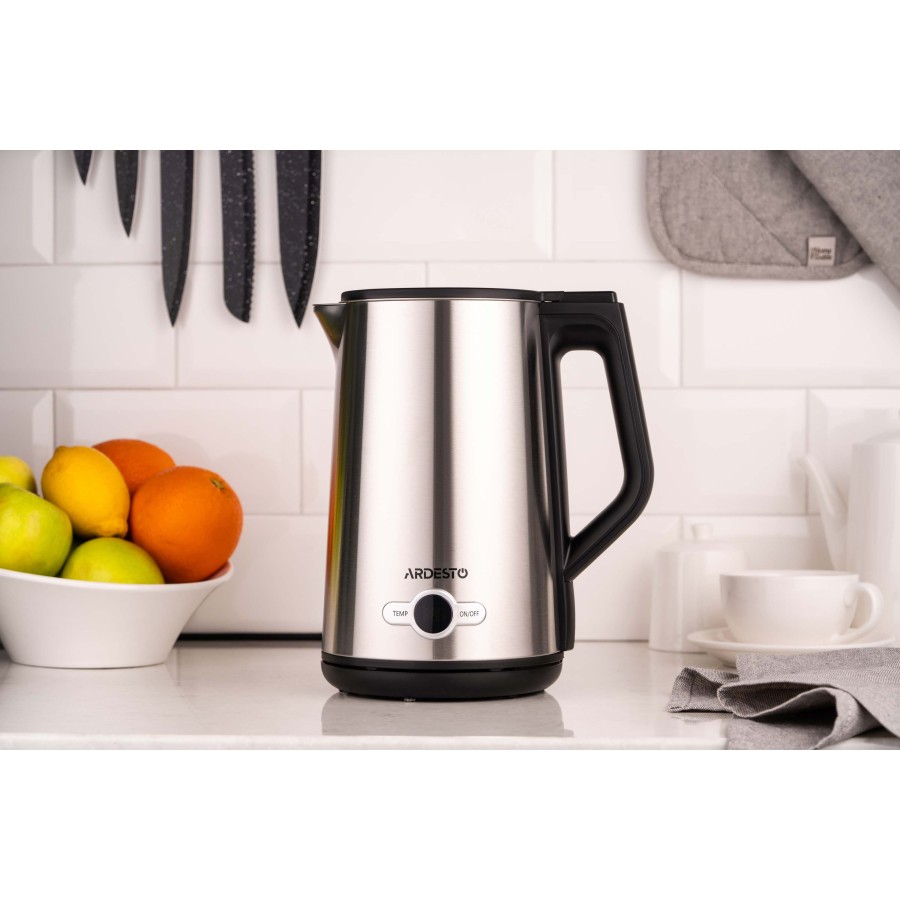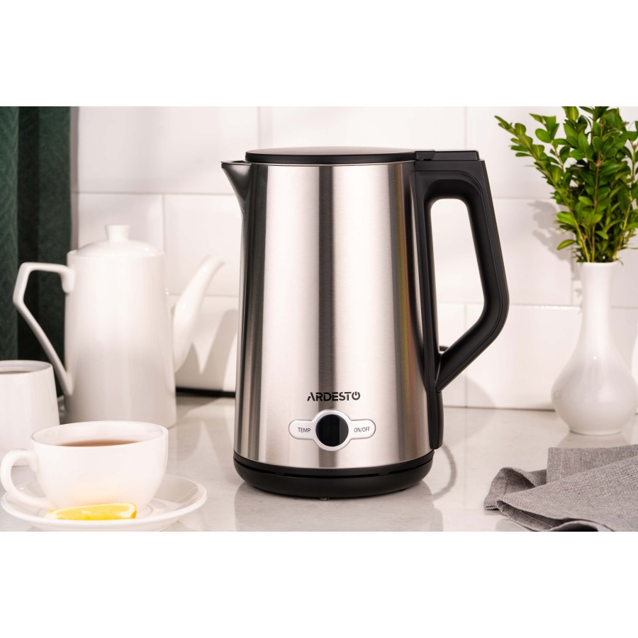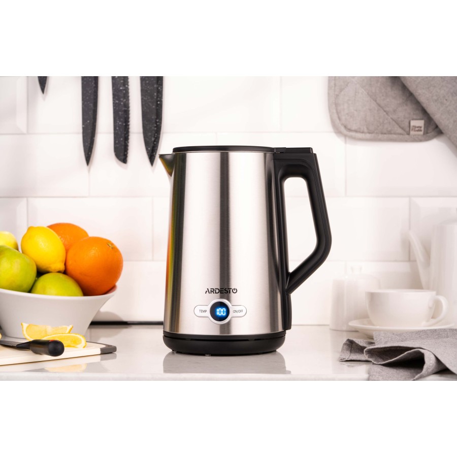 Завдяки електронному термостату з можливістю налаштування 7 режимів (40°, 50°, 60°, 70°, 80°, 90°, 100°) і LED-дисплею можна встановити потрібну температуру для будь-якого виду напоїв. Продумана система контролю нагрівання та відключення в разі закипання та відсутності води захищає від перегрівання та надмірного використання електроенергії. Бездротова із обертанням на 360° має стійкі ніжки, що не дадуть ковзати чайнику. Комфорту під час використання додають тиха робота та світлова індикація.