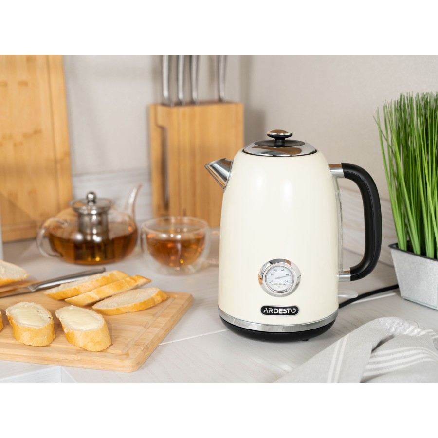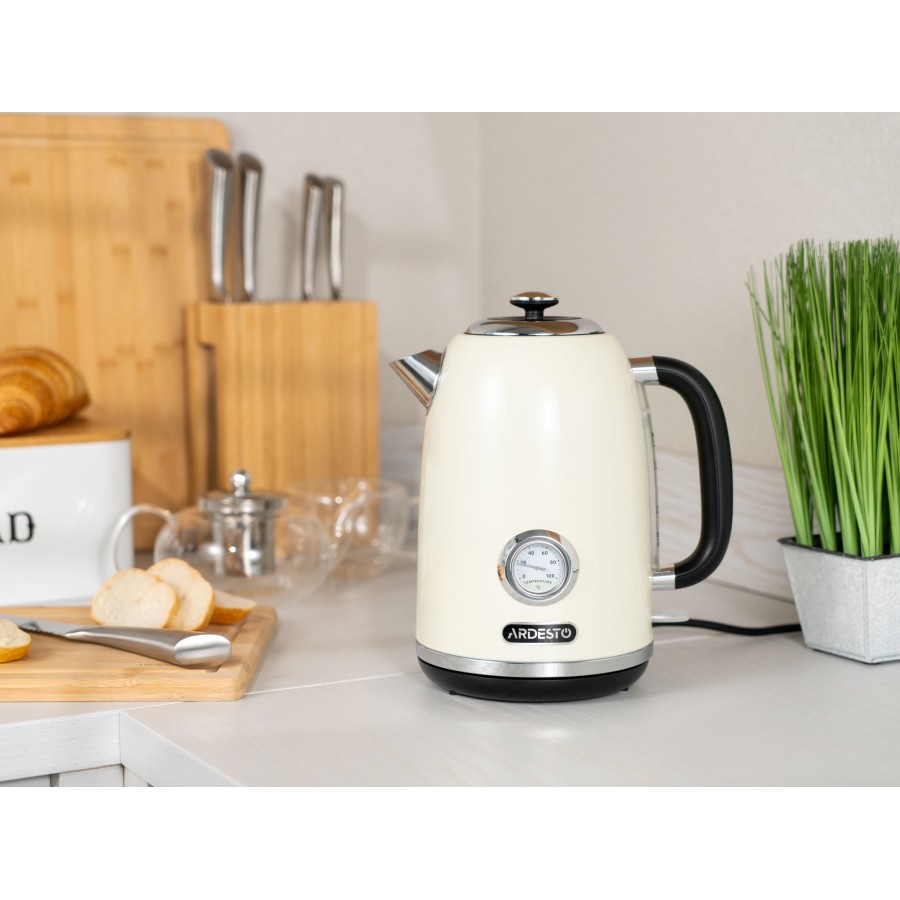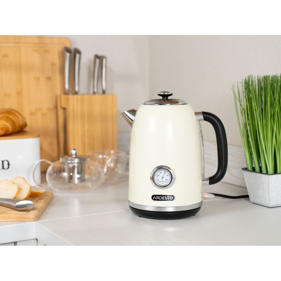 Вінтажний дизайн електрочайника ARDESTO EKL-F410BG бежевого кольору доповнює потужність 2 200 Вт, роблячи його незамінним помічником у побуті кожної родини. Виготовлений із нержавіючої сталі – універсального матеріалу як щодо вигляду, так і щодо міцності, і не зіпсується через постійний контакт із водою. Об’єму 1,8 л достатньо для родини з 4 осіб. Для додаткової зручності оснащений індикатором температури.