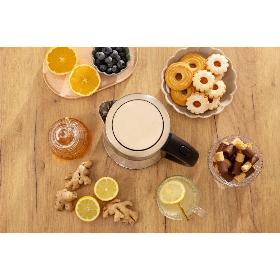 Завдяки захисту від увімкнення без води чайник автоматично вимикається, якщо в ньому немає або недостатньо води. Крім того, захист від перегріву вимикає пристрій при досягненні 100 °C.