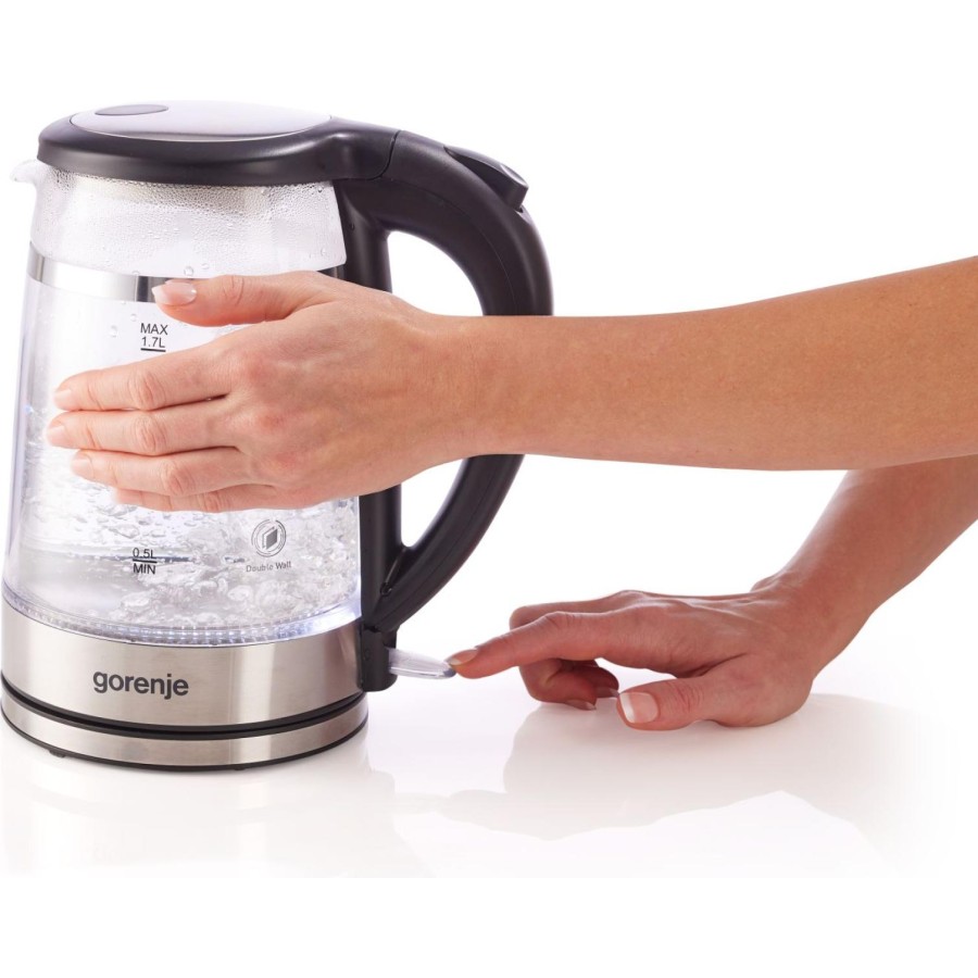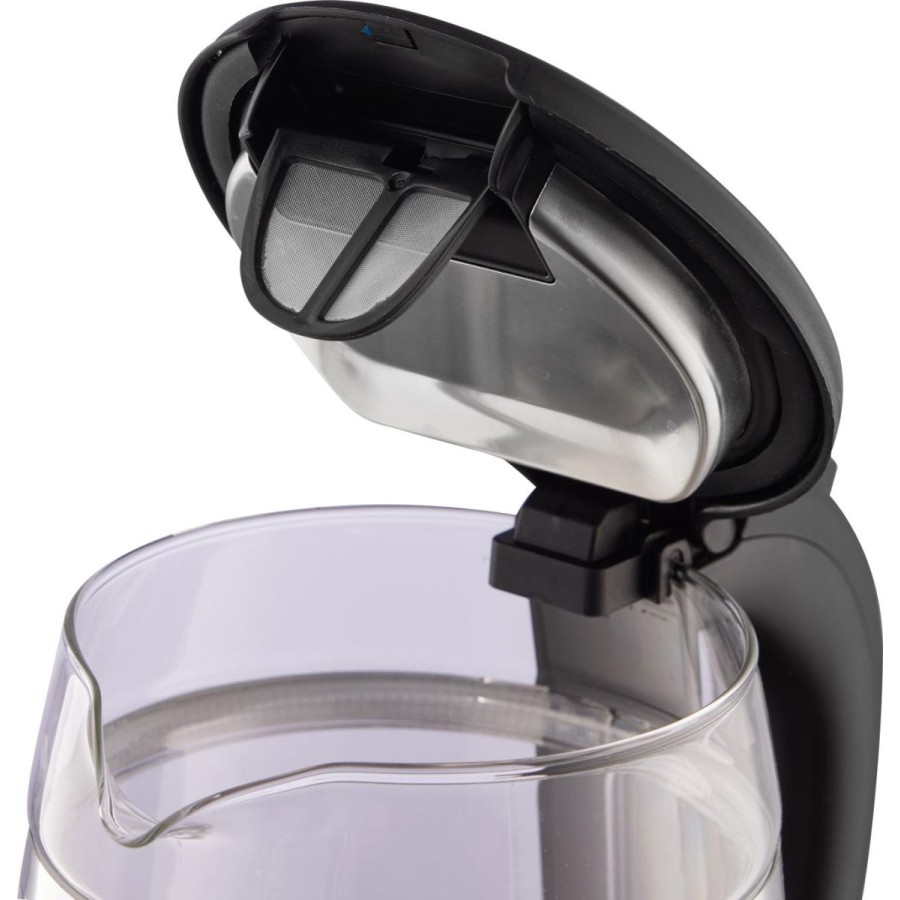 Дизайн цього чайника втілює високу якість життя з витонченими деталями. М’яке підсвічування ніжно освітлює скляний корпус, а нержавіюча сталь у нижній частині додає преміального вигляду. Ергономічна ручка ідеально лежить у руці, залишається холодною на дотик та гармонійно доповнює стиль вашої кухні.