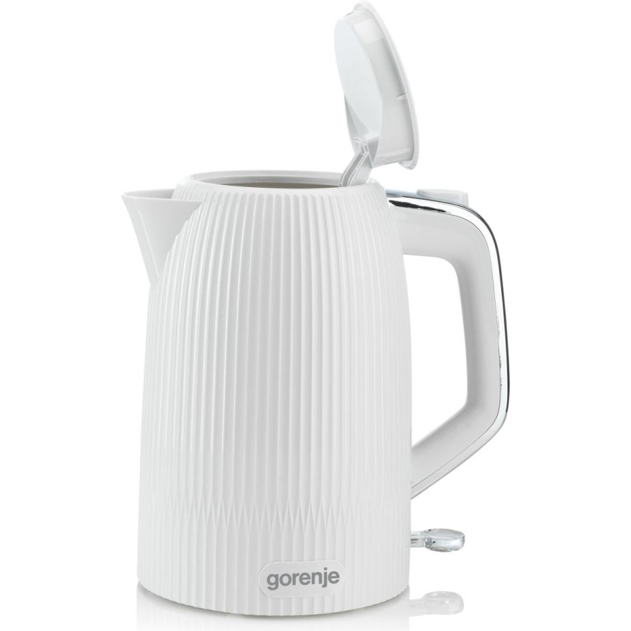 Чайник автоматично вимикається, якщо в ньому немає або недостатньо води завдяки функції захисту від роботи без води. Також пристрій вимикається при досягненні температури 100 °C для додаткової безпеки.