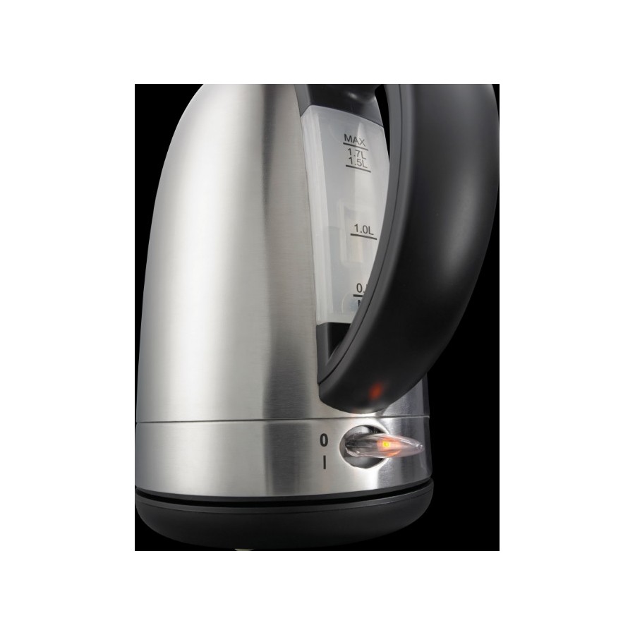 Чайник K17FEII об'ємом на 1.7 літра. Обертання навколо всієї осі забезпечує зручне користування без застрявання електропроводу. Чайник оснащений якісним фільтром від накипу, який легко знімається і миється. Крім того, він запобігає капання води при наливанні в чашку. Якщо в чайнику мало води або вона закінчилася, нагрів автоматично відключається. Крім того, чайник вимикається, коли температура води досягає 100 ° С.