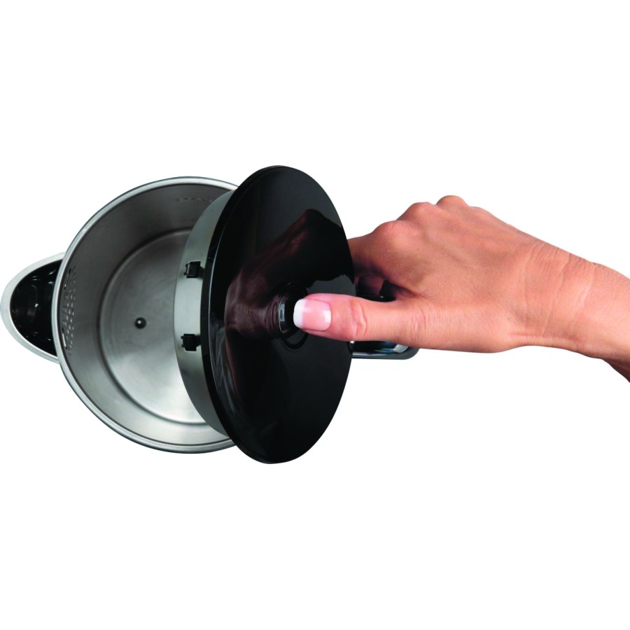 Запашний чай або ароматну каву можна приготувати однією рукою. Відкрийте кришку, просто натиснувши пальцем на кнопку. І не потрібно турбуватися про опіки, адже кнопка завжди залишиться холодною.