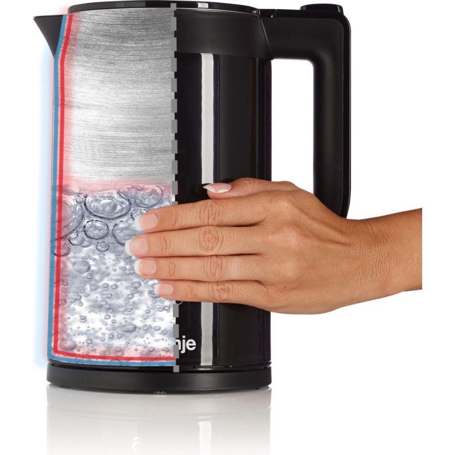 Завдяки об'єму чайника Gorenje на 1,7 л, ви зможете закип’ятити воду одразу на всю сім’ю. Дуже зручно також, коли у вас в гостях багато друзів. Він оснащений системою захисту від перегрівання та автовідключення. Обертання на 360° для зручності. Термостат Strix. Подвійні стінки з нержавіючої сталі для ефективного утримання тепла. Легке очищення завдяки спеціальній конструкції.