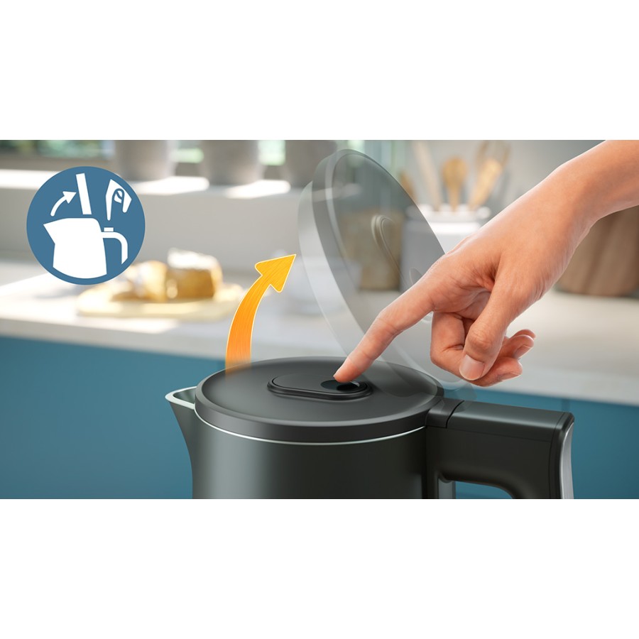 Зробіть свій внесок у захист довкілля, заощаджуючи енергію та воду. Нагрівайте лише необхідну кількість води за допомогою індикатора ємності для чашки для швидкого й енергоефективного закипання менш ніж за хвилину.