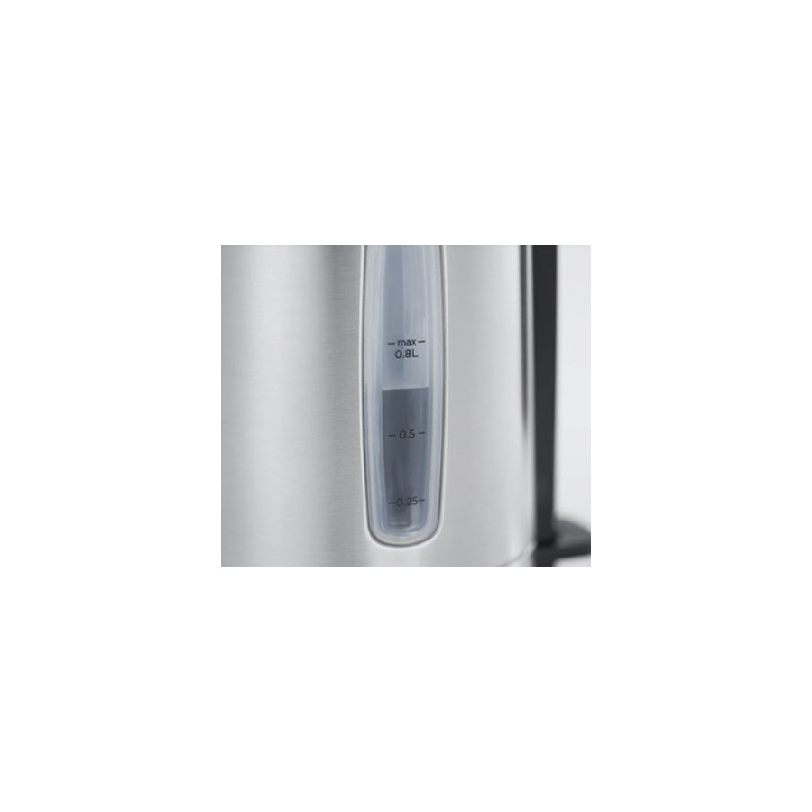 Чайник з нової лінійки приладів для кухні Compact Home був створений спеціально для невеликих квартир, гуртожитків і просто місць, де простір завжди в пошані. 24190-70 поєднує в собі сучасний стиль і чудову продуктивність, зберігаючи при цьому ваш простір на кухні.Корпус чайника виконаний з матової нержавіючої сталі преміум-класу з акцентами з полірованої сталі. Компактні розміри і оптимальна ємність 0,8 л роблять його ідеальним приладом для сімейних пар або тих, хто живе один.Будь то кава, щоб почати свій ранок, чай після довгого робочого дня або трохи води для приготування - цей компактний чайник з легкістю впорається з будь-яким завданням. Потужність чайника 2400 Вт дозволить приготувати улюблені напої за лічені хвилини, що особливо корисно вранці, коли кожна секунда важлива. А завдяки ідеальній формі носика жодної краплі не проллється