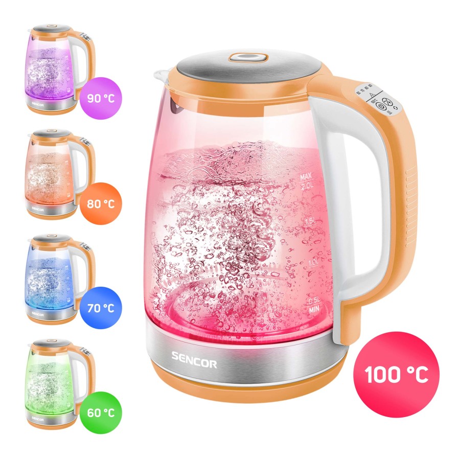 Електрочайник Sencor 2л, Strix, скло, 5 темп.реж, помаранчевий (SWK2193OR)