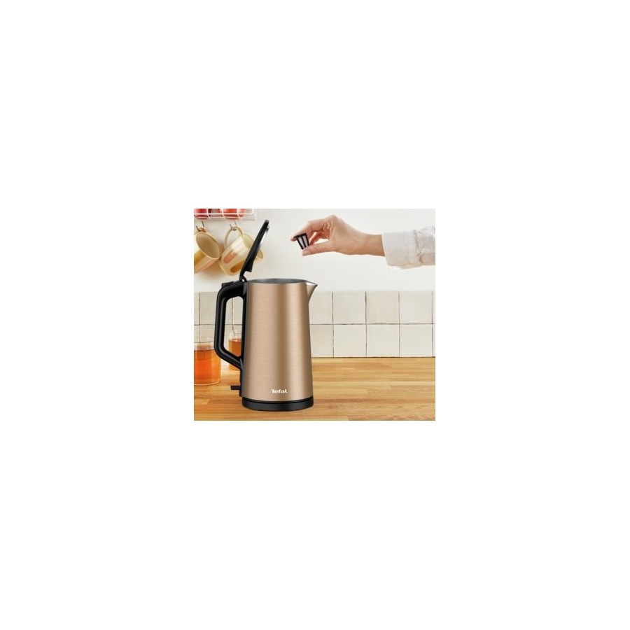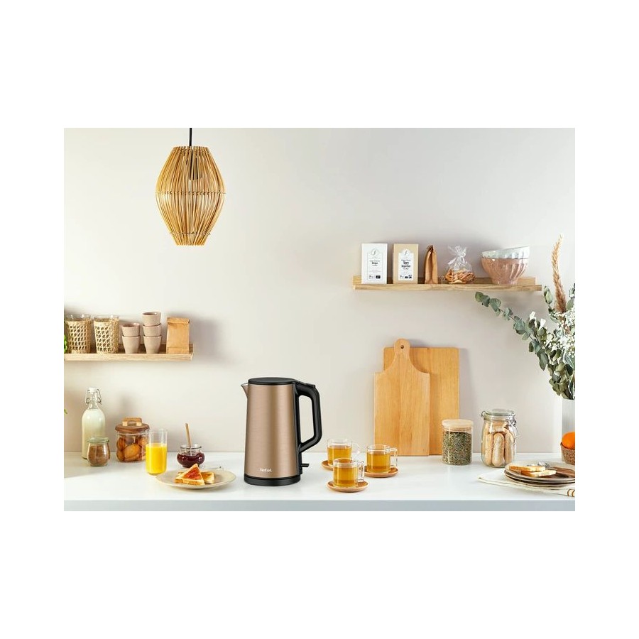 Модель привертає увагу своїм вишуканим дизайном. Крім елегантних мінімалістичних форм та оригінального колірного рішення, електрочайник TEFAL KI583C10 вигідно відрізняють і технічні характеристики. Пристрій виконаний у високоякісному двошаровому корпусі. Якщо порівнювати цю конструкцію з традиційними аналогами, можна переконатися, що електричний чайник з подвійними стінками має кращу теплоізоляцію та вищий рівень безпеки (виключається ризик опіку при дотику до корпусу).