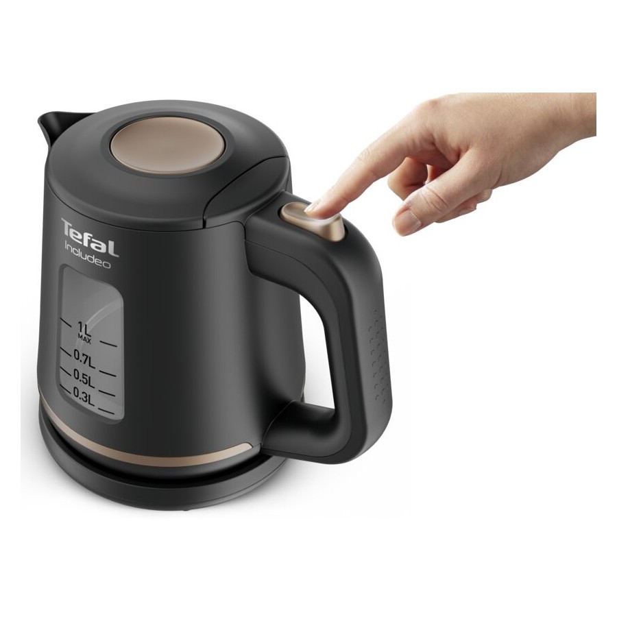 Основа чайника обертається на 360° і має контрастне кольорове кільце, справжній візуальний помічник для легшого розміщення під будь-яким кутом. Чайник також обладнаний великою кнопкою вмикання/вимикання зі світловим індикатором і зручним носиком для точнішого подавання.